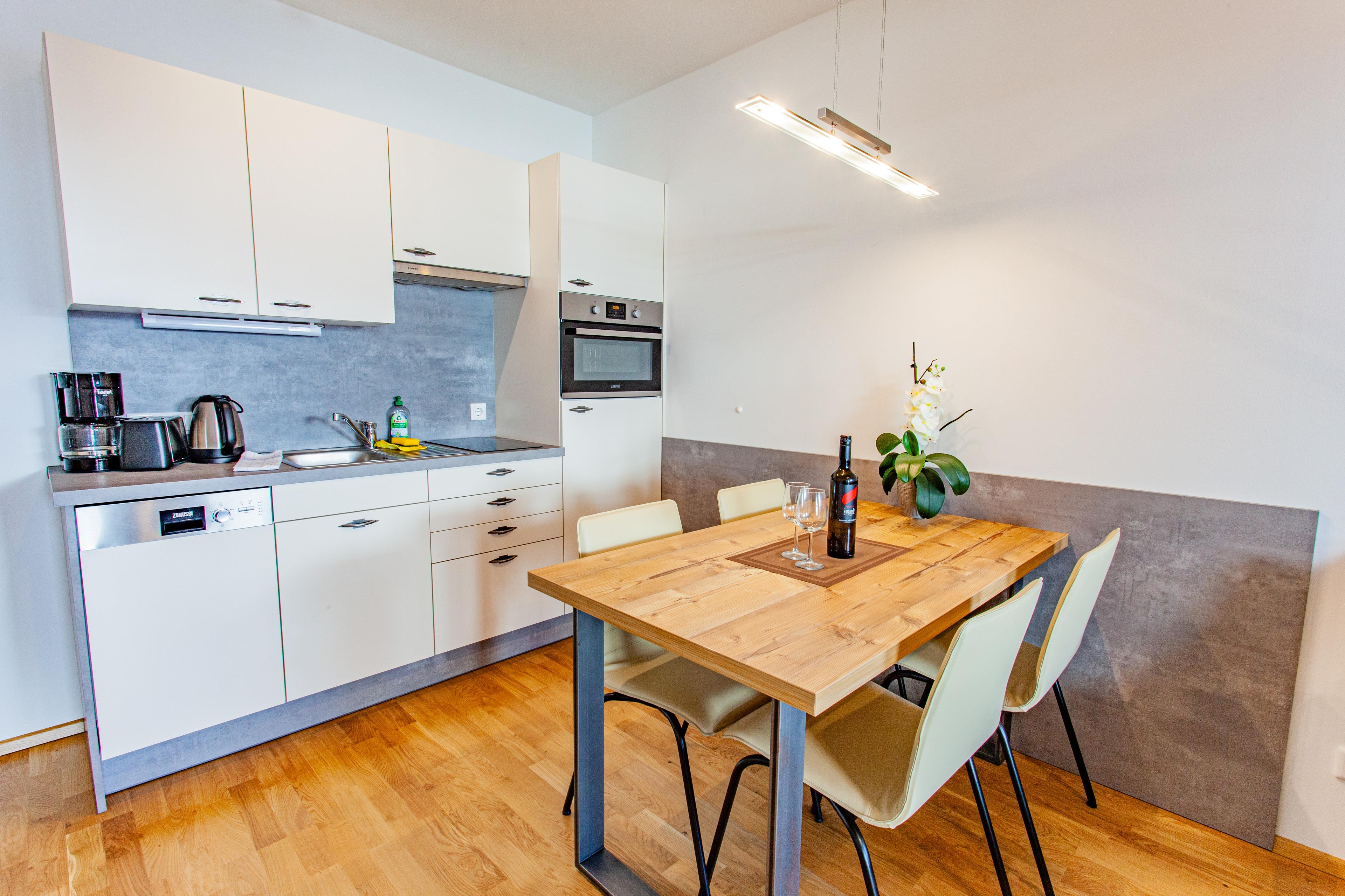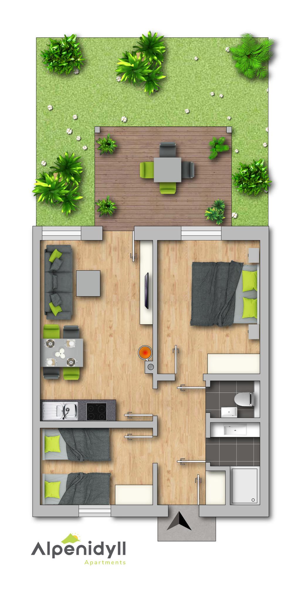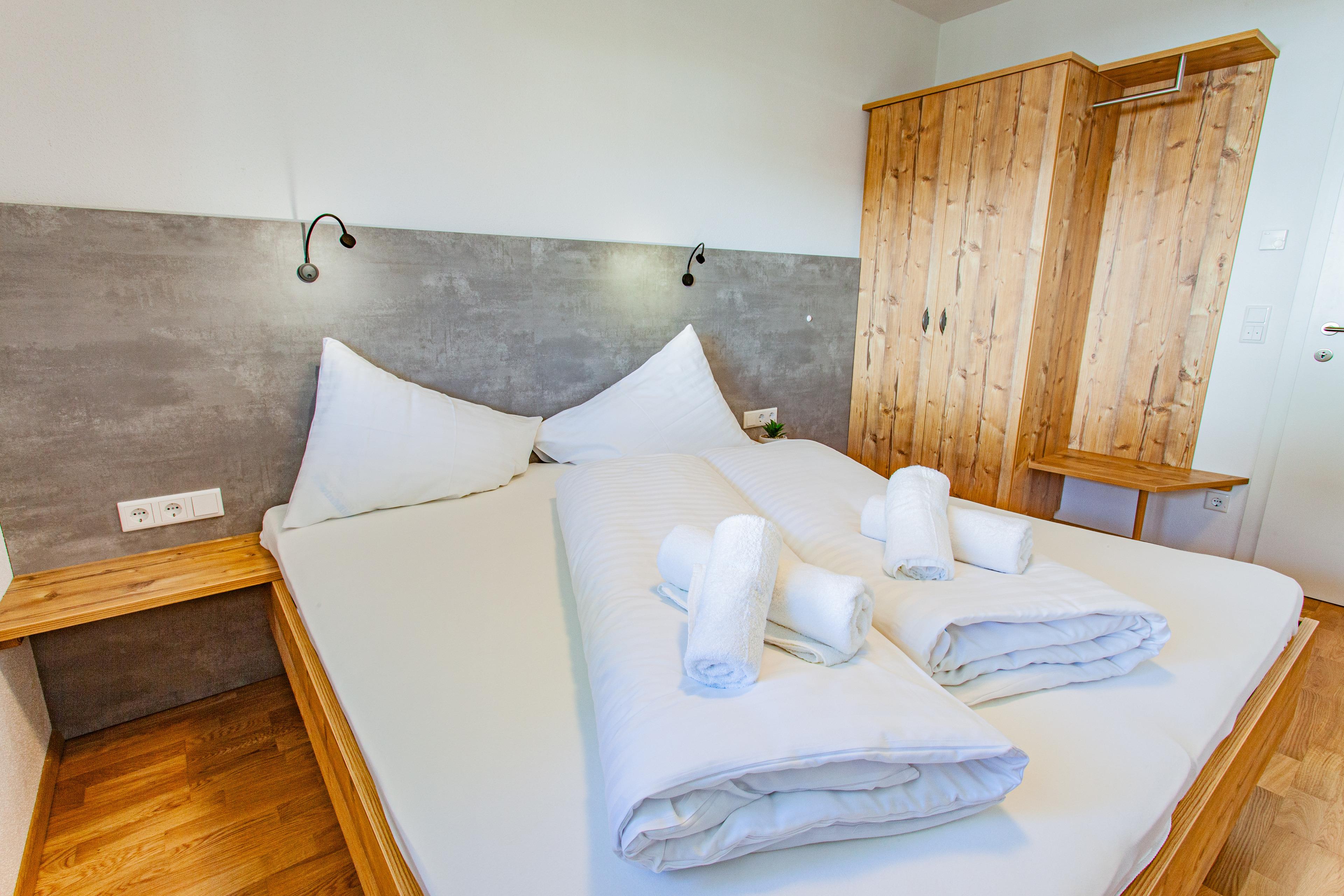 Die moderne Erdgeschosswohnung bietet Platz für bis zu sechs Personen. Zwei Schlafzimmer, eine voll ausgestattete Wohnküche, ein stilvolles Bad, ein separates WC und ein gemütlicher Wohnbereich mit Flachbild-TV sorgen für entspannte Urlaubstage. Die große Terrasse mit Blick auf die Berge lädt zum Verweilen ein. WLAN und SAT-TV sind inklusive.