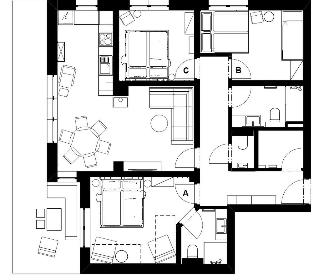 Das moderne Apartment Aich Amadé bietet auf 88 m² höchsten Komfort für Familien und Gruppen bis zu 8-10 Personen. Drei Schlafzimmer (3× Doppelbett, 1× Etagenbett) und zwei ausziehbare Sofas.