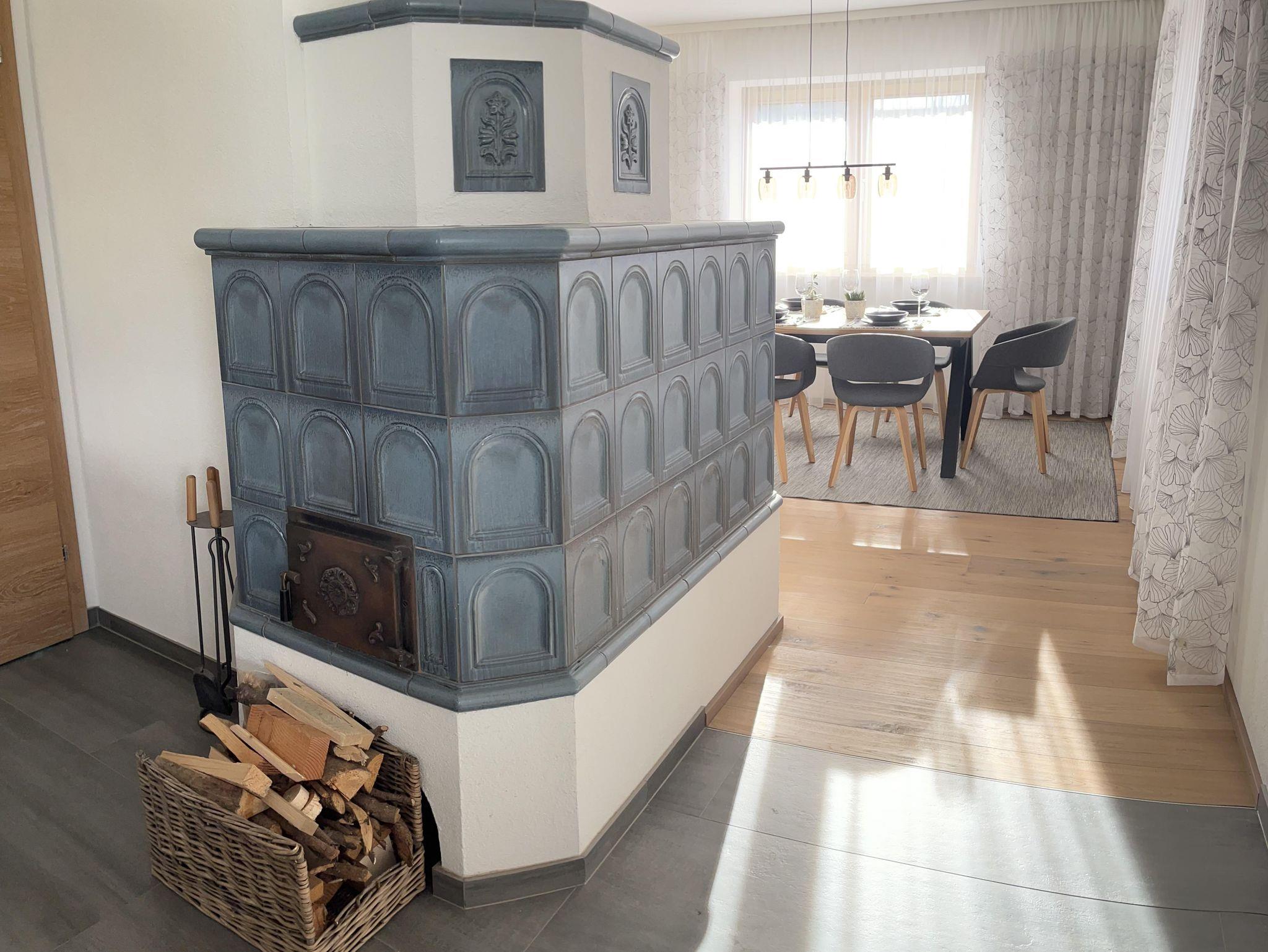 Der Wohn- und Essbereich umfasst eine große Sitzecke, die sich in ein gemütliches Schlafsofa verwandeln lässt. Der Essbereich hat genügend Platz um den Tag bei kuscheliger Kachelofenwärem ausklingen zu lassen.