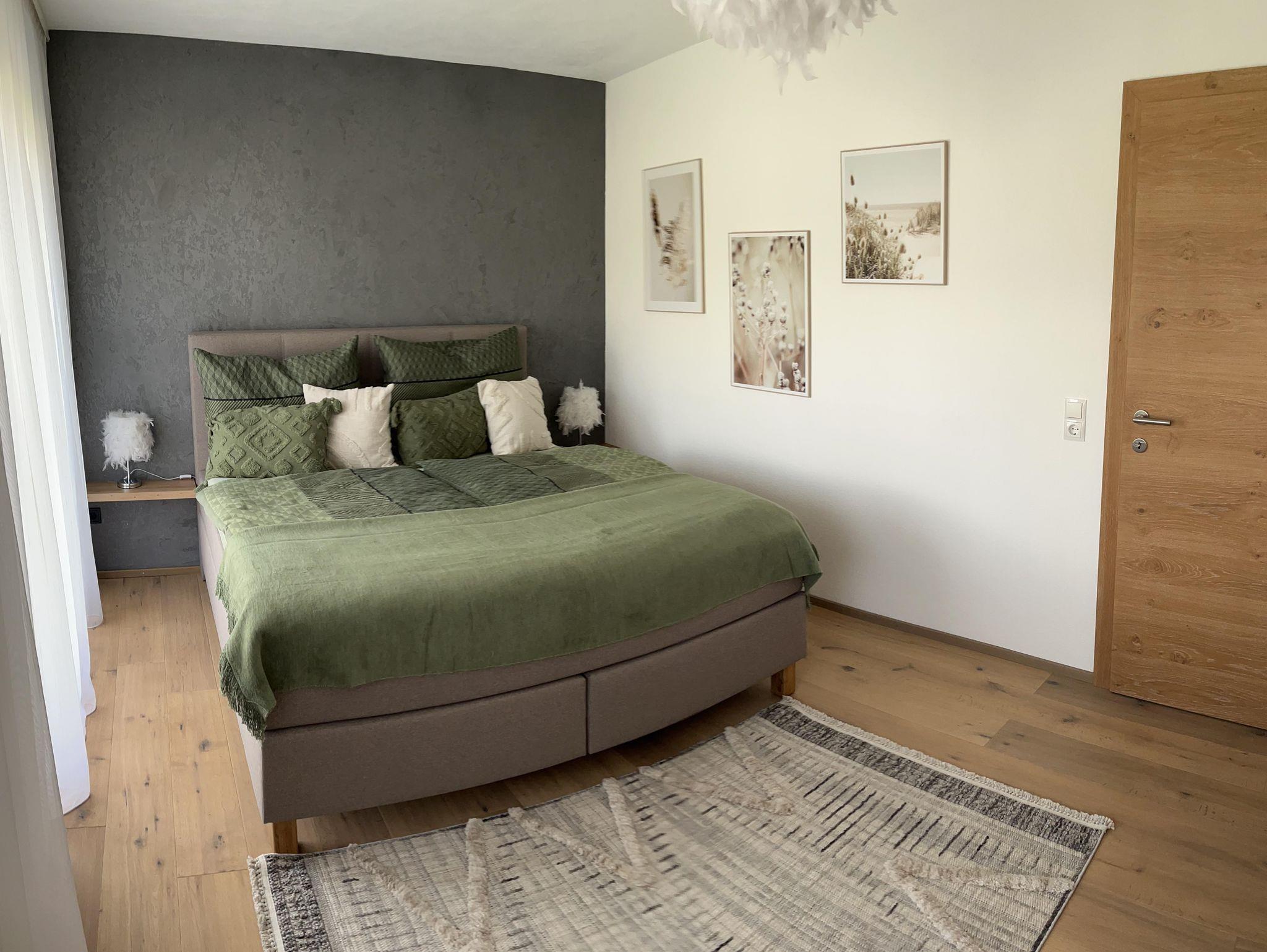 In den beiden mit Boxspringbetten ausgestatteten Schlafzimmern lässt es sich so richtig schön kuscheln und träumen.