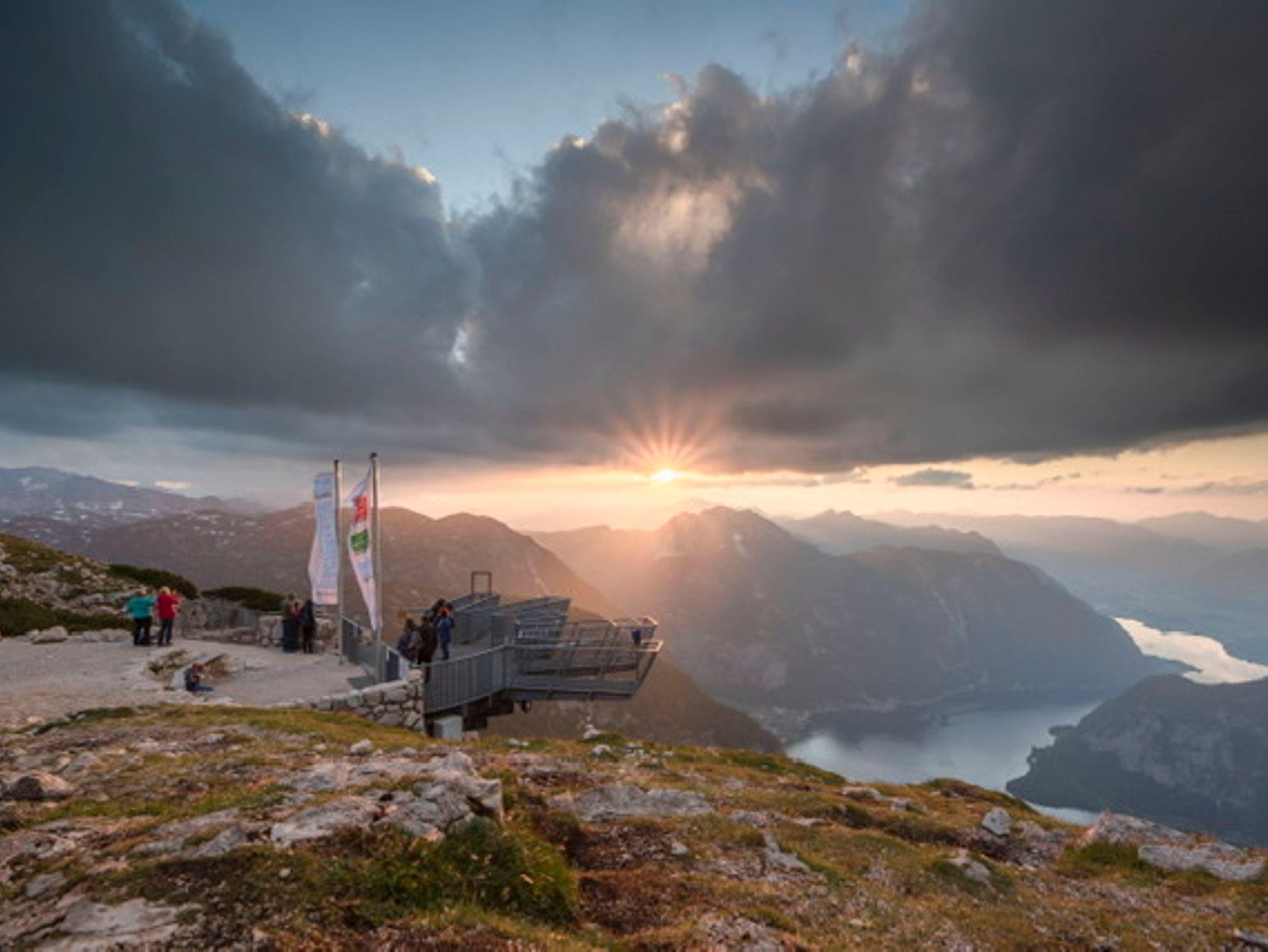 Erleben Sie den herrlichen Ausblick von der Aussichtsplattform 5fingers, der absoluten Topattraktion der Erlebniswelt Dachstein Krippenstein!