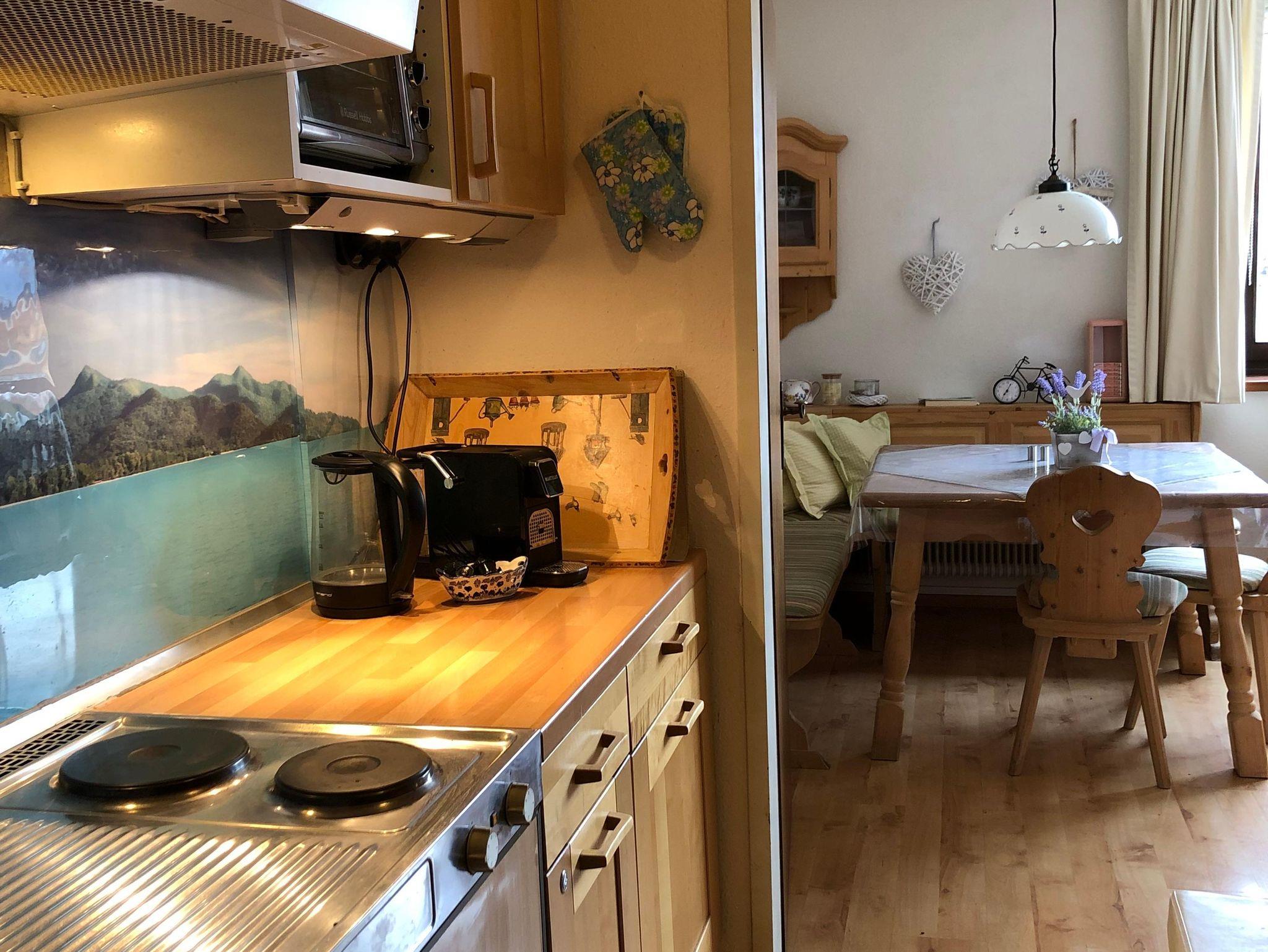 -voll ausgestattete Küche mit Kaffeemaschine, Toaster, Eierkocher, Wasserkocher und Gewürzen...