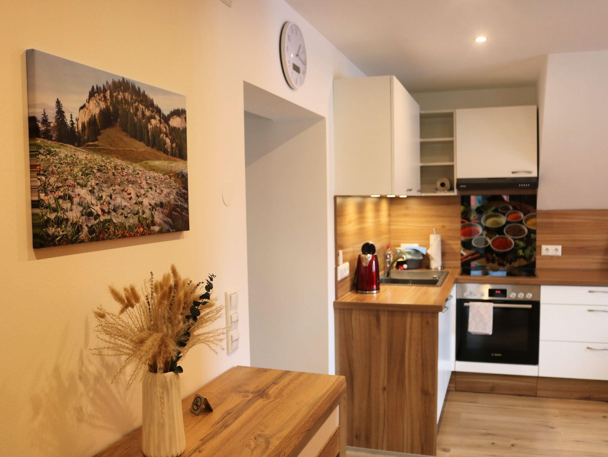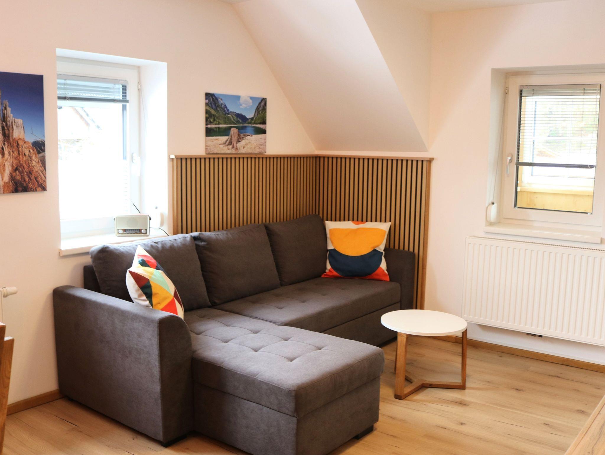 Das rund 47m² große Appartement besteht aus einer komplett eingerichteten Wohnküche, einem Doppelzimmer mit Beistellcouch, Bad und WC. SAT-TV, Bettwäsche, Hand-und Badetücher, sowie Strom im Preis inbegriffen. Darüber hinaus stehen beim Gästehaus kostenfreie Privatparkplätze zur Verfügung. Für Kinder und Babys ist ein Gitterbett vorhanden. Nur 500m trennen Sie vom Hallstättersee.