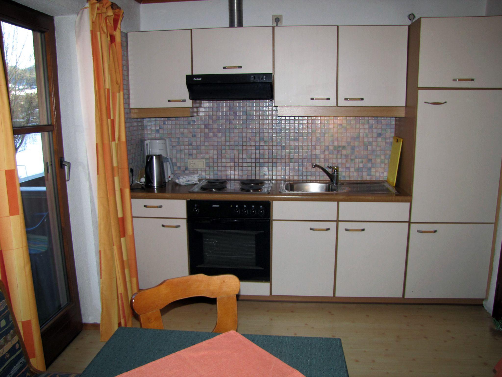 Die Wohnung hat ca. 50m² und besteht aus einer gemütlichen Wohnküche mit Sitzecke. Der Küchenblock ist mit Geschirr ausgestattet, hat Elektroherd mit Backrohr, Spüle, einen Kühlschrank, Mikrowelle, Toaster und eine Kaffeemaschine. SAT-TV