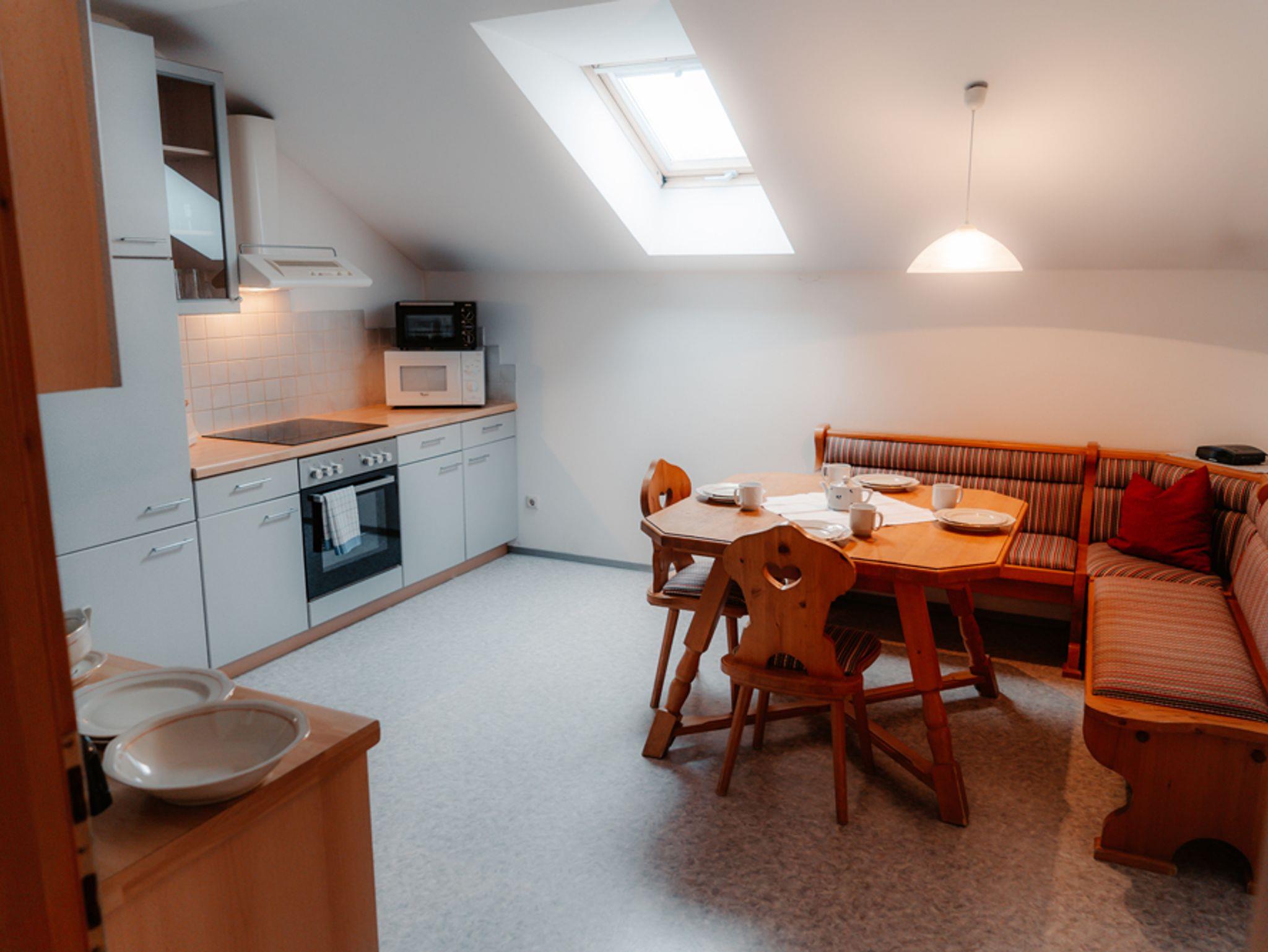 Unsere Ferienwohnung befindet sich im 1. Stock in einer sehr sonnigen Lage und bietet Platz für 2 bis 6 Personen. Unweit des neuen Kurzentrums (Sauna- Bade- und Therapiemöglichkeiten gegen Voranmeldung) und nur circa 10-15 Gehminuten vom Ortszentrum entfernt. Zur Bushaltestelle sind es nur 3 Gehminuten, hier fährt der Gratis Skibus in die Skregion Dachstein West ab oder auch der Gratis-Winter-Thermenbus nach Bad Ischl.