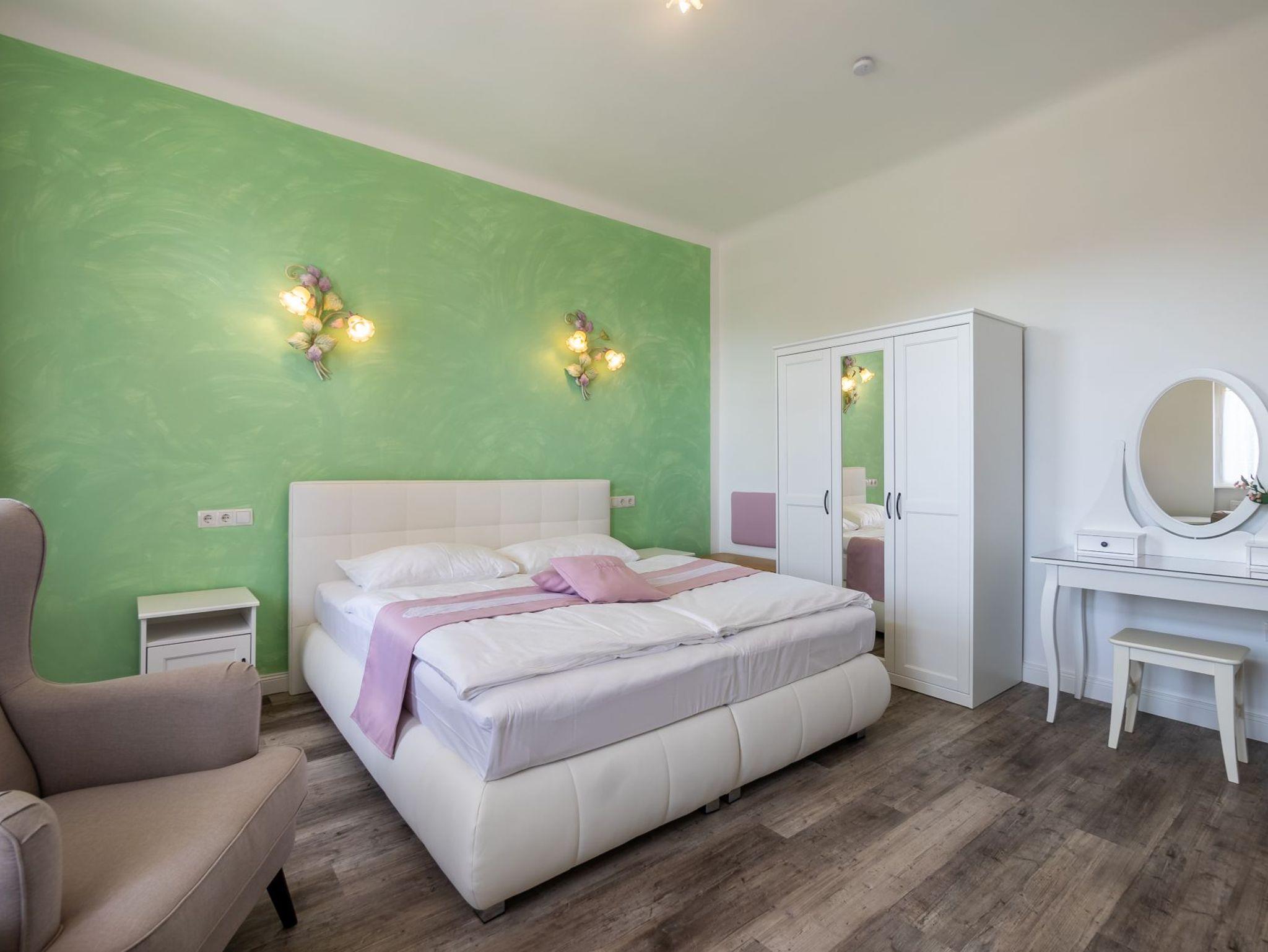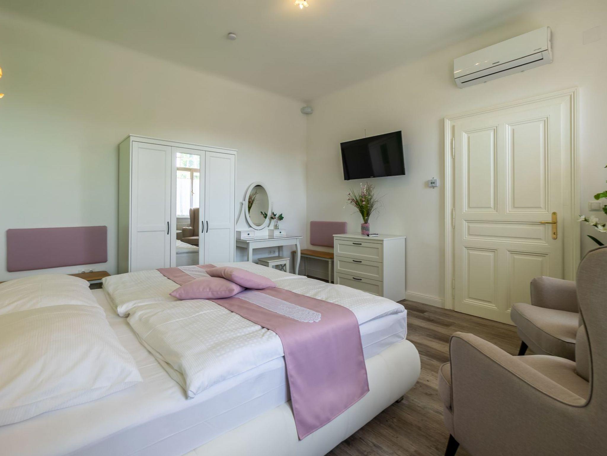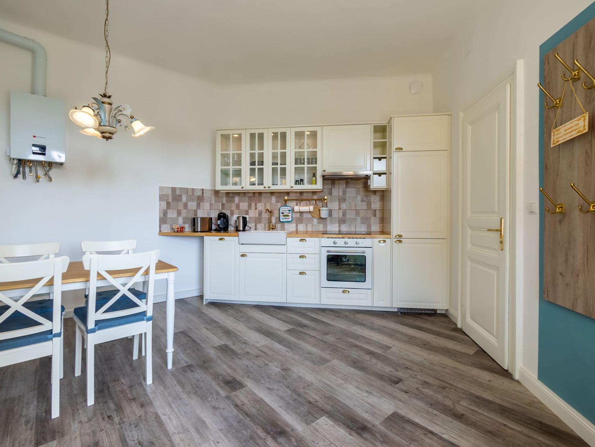 Das romantische Apartment Katja im zweiten Obergeschoss, erreichbar über eine charmante Pawlatsche, ist mit seinen ca. 38?m² der perfekte Rückzugsort für Paare. Die helle Küche mit einladendem Essbereich schafft eine gemütliche Atmosphäre für gemeinsame Stunden, während das liebevoll eingerichtete Schlafzimmer mit komfortablem Doppelbett zum Entspannen und Wohlfühlen einlädt – ideal für alle, die Ruhe, Charme und Geborgenheit in stilvollem Ambiente suchen.