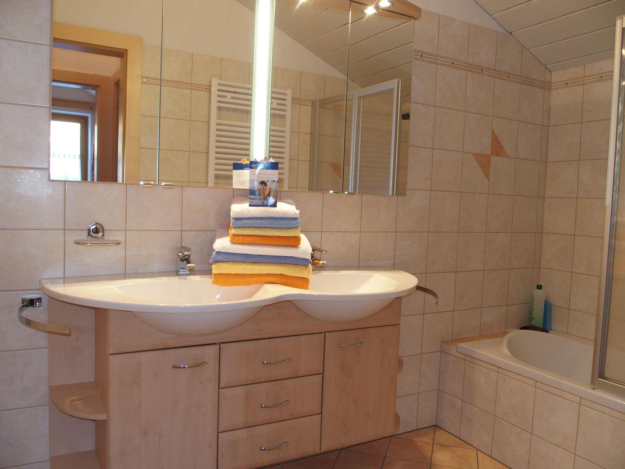 Von dieser Wohnung aus genießen Sie einen herrlichen Ausblick auf die umliegende Bergwelt und auf weite Teile des Lesachtales. Es erwartet Sie eine top ausgestattete Ferienwohnung - neuwertig, hell, gemütlich und mit viel Komfort. Sehr großer Wohnbereich mit Flachbild SAT-TV, Radio und Südbalkon, 2 Doppelschlafzimmer mit Fliegengitter und Verdunkelungsrollos, Bettenlänge in einem der Doppelschlafzimmer 2,10 m, (Gitterbett bzw. Zustellbett möglich); super Küchenausstattung (Geschirrspüler, Mikrowelle, E-Herd mit Backrohr, Kühlschrank mit 4 Sterne Gefrierfach uvm.), großer Esstisch, Bad mit Doppelwaschtisch und Kosmetikspiegel, Badewanne (auch zum Duschen geeignet), Fußbodenheizung/Handtuchtrockner; seperates WC, große Garderobe mit Ganzkörperspiegel, Südbalkon. Besonders viel Stauraum in dieser Wohnung, Gästewaschmaschine im Haus!
