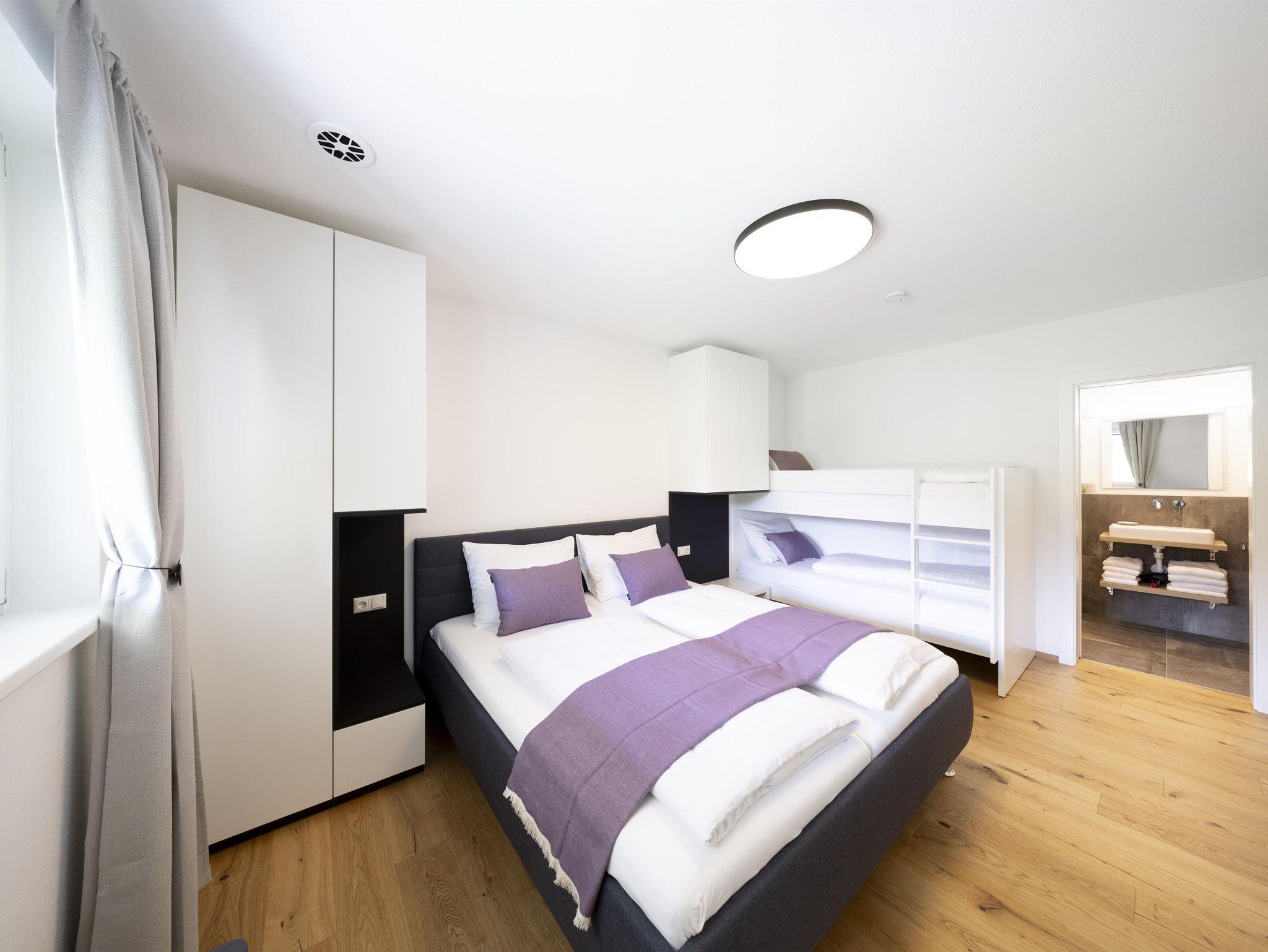 • 1 Schlafzimmer mit komfortablem Doppelbett sowie einem Etagenbett (ideale Belegung: 2 Erwachsene, 2 Kinder
