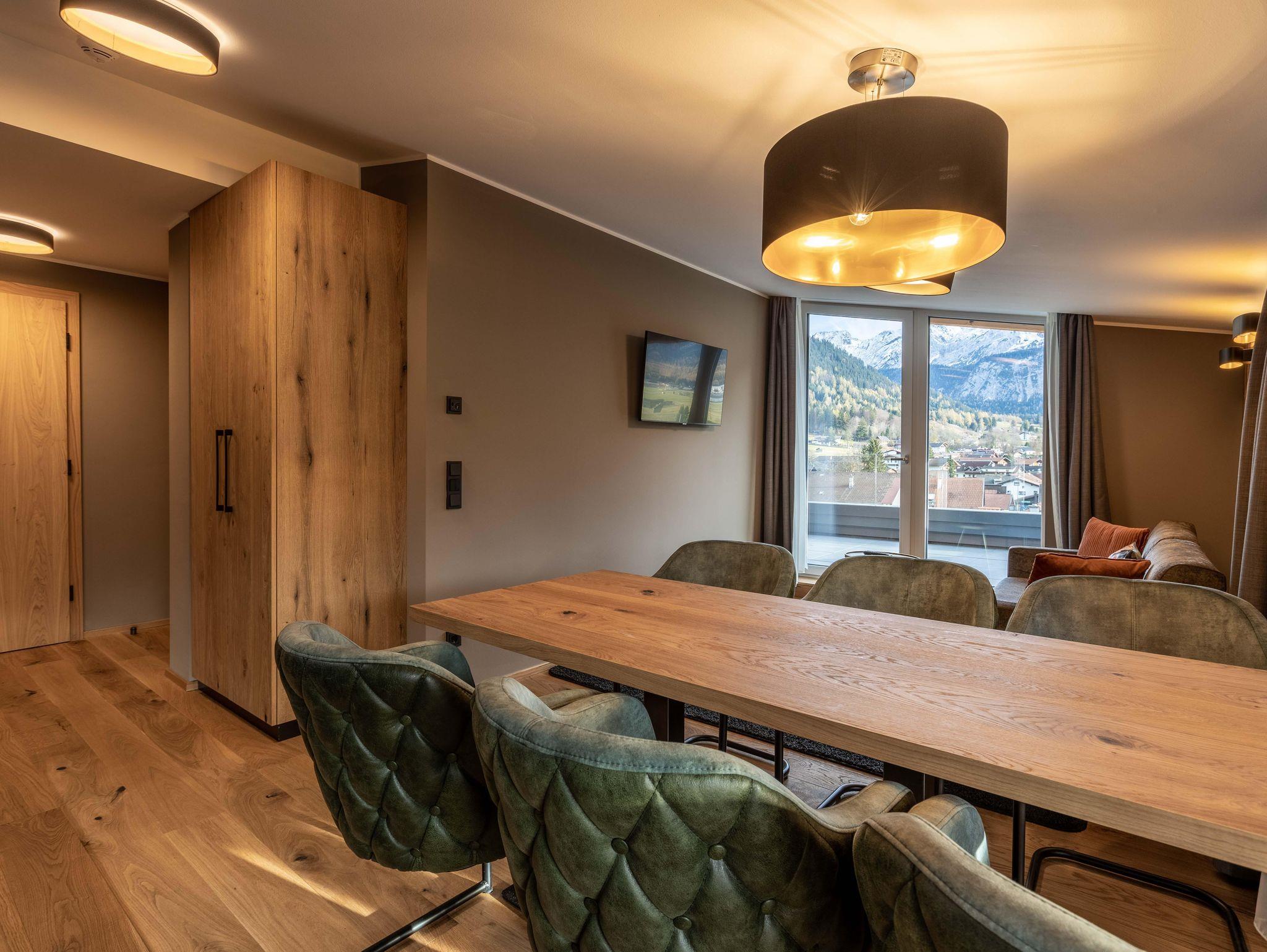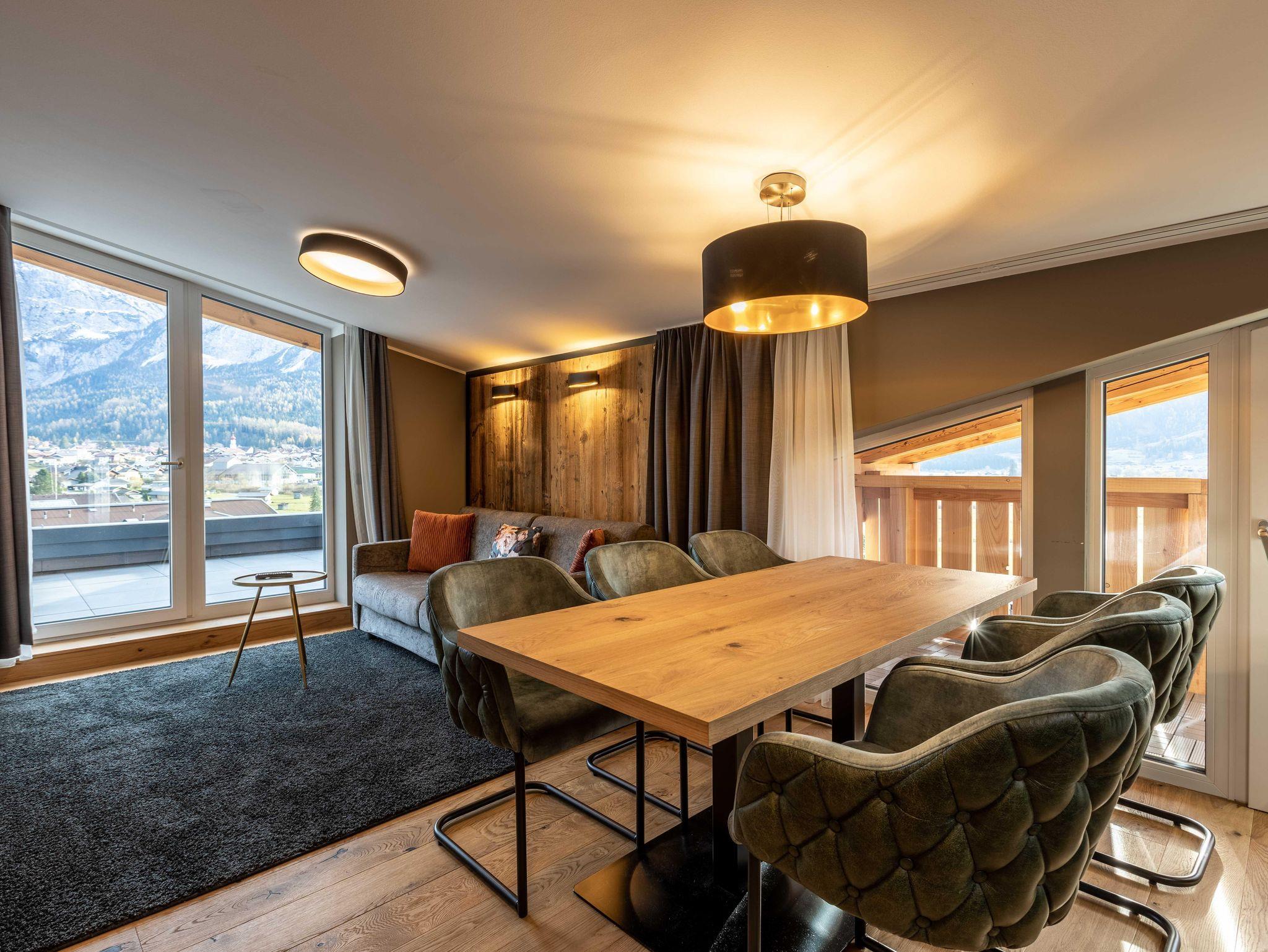 Zugspitz Residences liegt im Herzen von Ehrwald, direkt neben dem Golfplatz und in unmittelbarer Nähe des weit bekannten Ehrwalder Schigebiets. Dieser einzigartige, familienfreundliche Topspot garantiert ganzjährig Sport- und Freizeiterlebnisse der besonderen Art. Die bequem vom Haus aus zu erreichende Zugspitz Arena mit 56 Bergbahnen bietet auf 142 Pistenkilometern abwechslungsreiches Skivergnügen in allen Schwierigkeitsgraden! Des Weiteren sind eine problemlose Anbindung (Flughafen Innsbruck, 75 km - Flughafen München (DE), 147 km - Flughafen Salzburg, 196 km - Flughafen Zürich (CH), 200 km) und diverse Ausflugsziele (Bayrische Königsschlösser, Seefeld, Ötzi Dorf, Swarovski Kristallwelten, Innsbruck uvm.) gegeben. Parkmöglichkeiten sind rund um die Residenz vorhanden. Für Körper und Seele besteht im Erdgeschoß ein exklusiver Wellnessbereich mit Indoor-Infinity-Pool, finnischer Sauna, Bio-Sauna sowie Infrarotkabine, Regenerationsdusche und einem Ruheraum für totale Entspannung. Der Außenbereich animiert im Sommer zum Relaxen in der Sonne und im Winter ist dort Erfrischung nach einem ausgiebigen Saunagang möglich.
