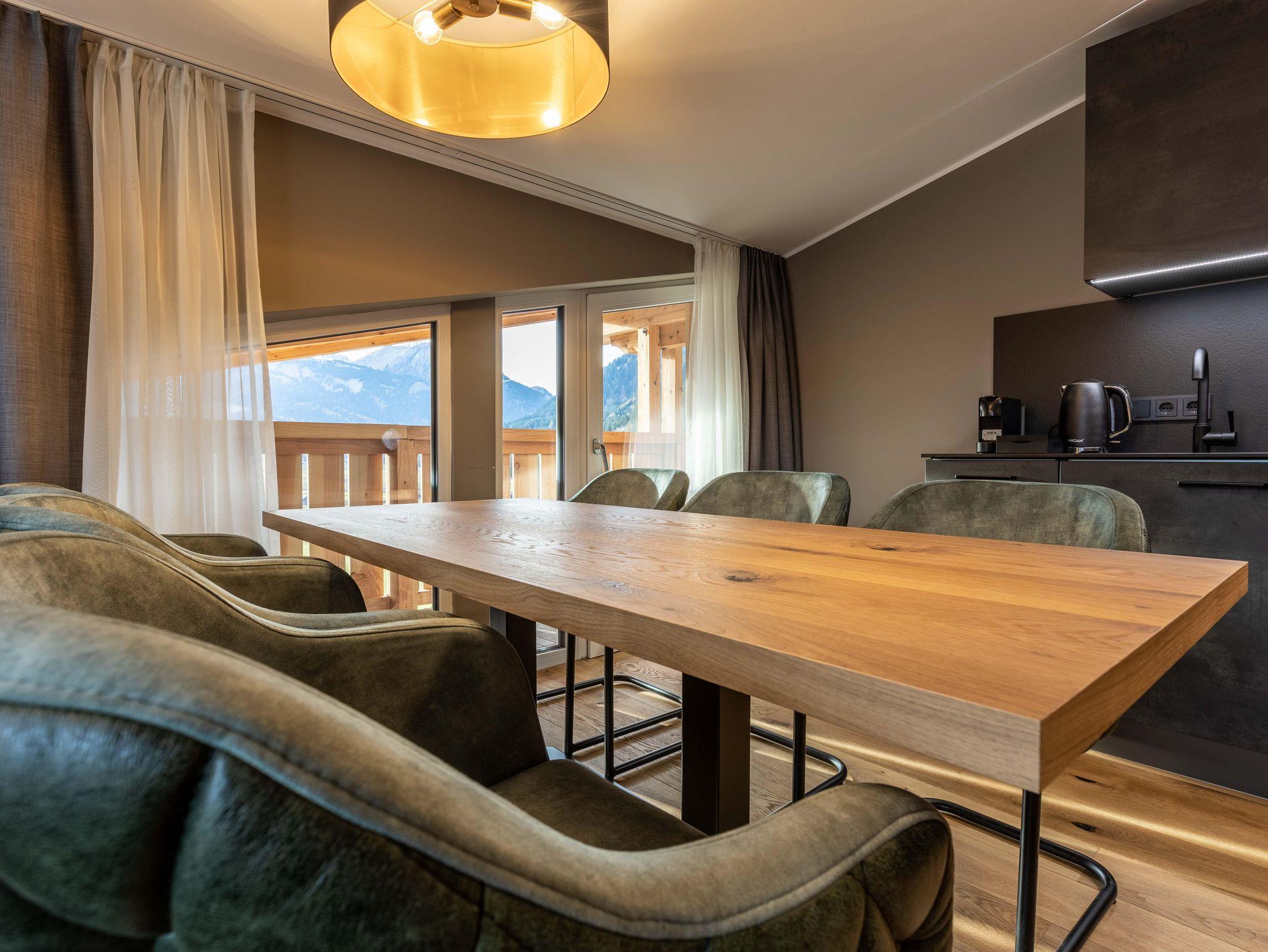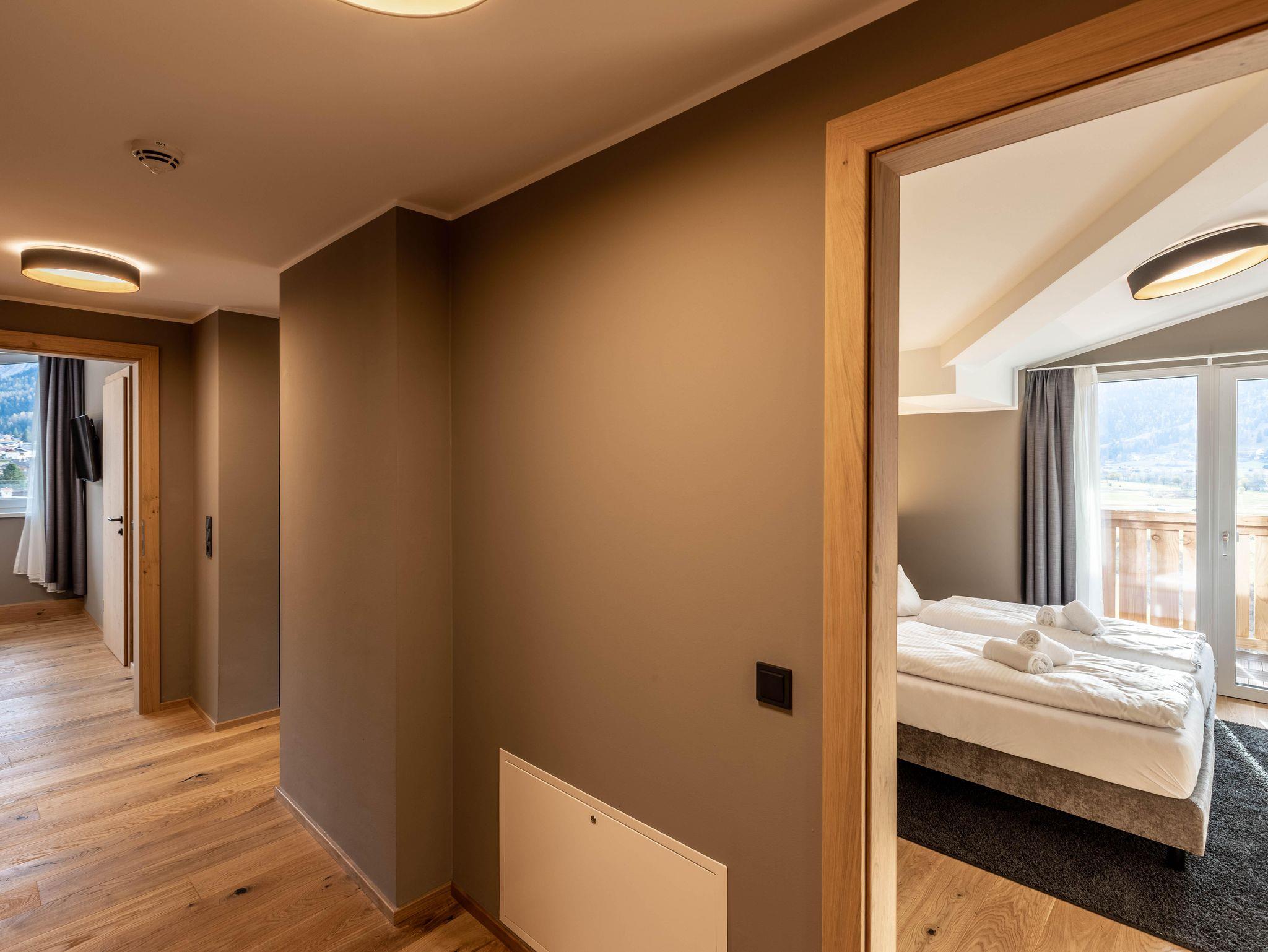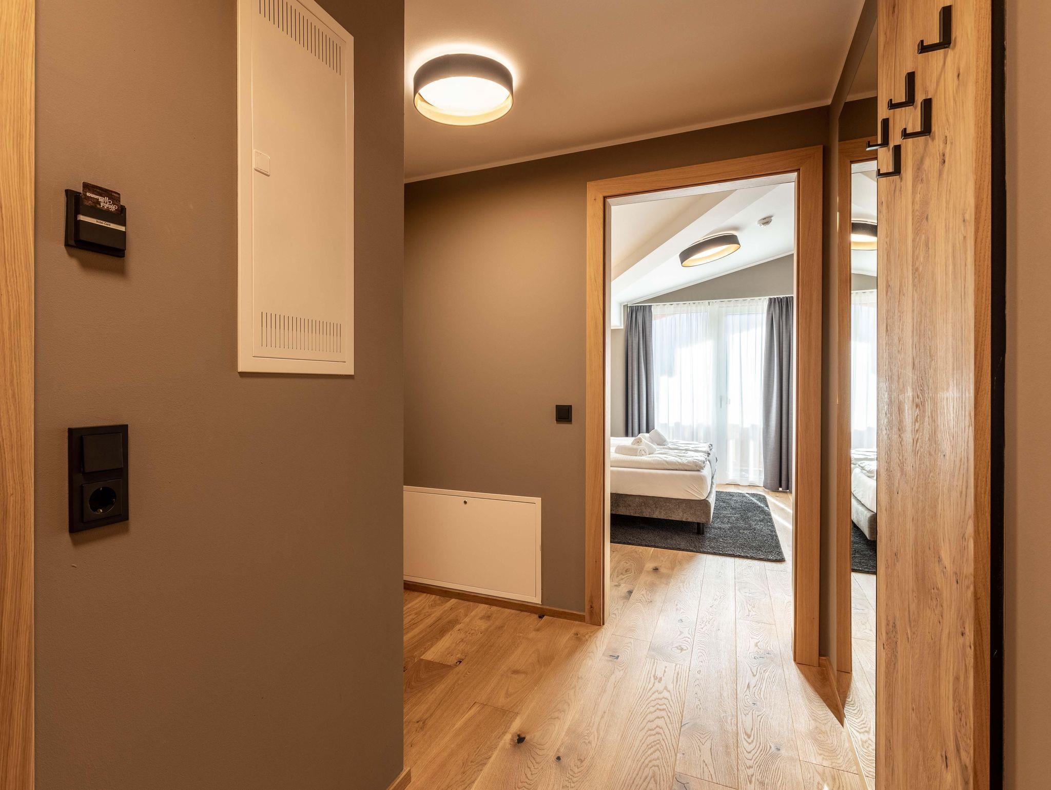 Das Apartment für 6 Personen wartet mit Wohnküche, 2 Schlafzimmern (Boxspringbetten, 1x Terrassenzugang+eigenes Bad), 2 Bädern, Terrasse+Balkon auf. Der Eingangsbereich, führt direkt in die Wohnküche, welche mit Küchengeräten, Kühl-Gefrierkombi sowie Nespressomaschine ausgestattet ist. Am Esstisch ist Platz, um ein selbstgekochtes Mahl zu genießen. Im Wohnbereich (Balkonzugang) befinden sich TV, Schrank+Ausziehsofa. Auf Anfrage ist das Apt. mit dem anderen Penthouse buchbar. (für 12 Personen)