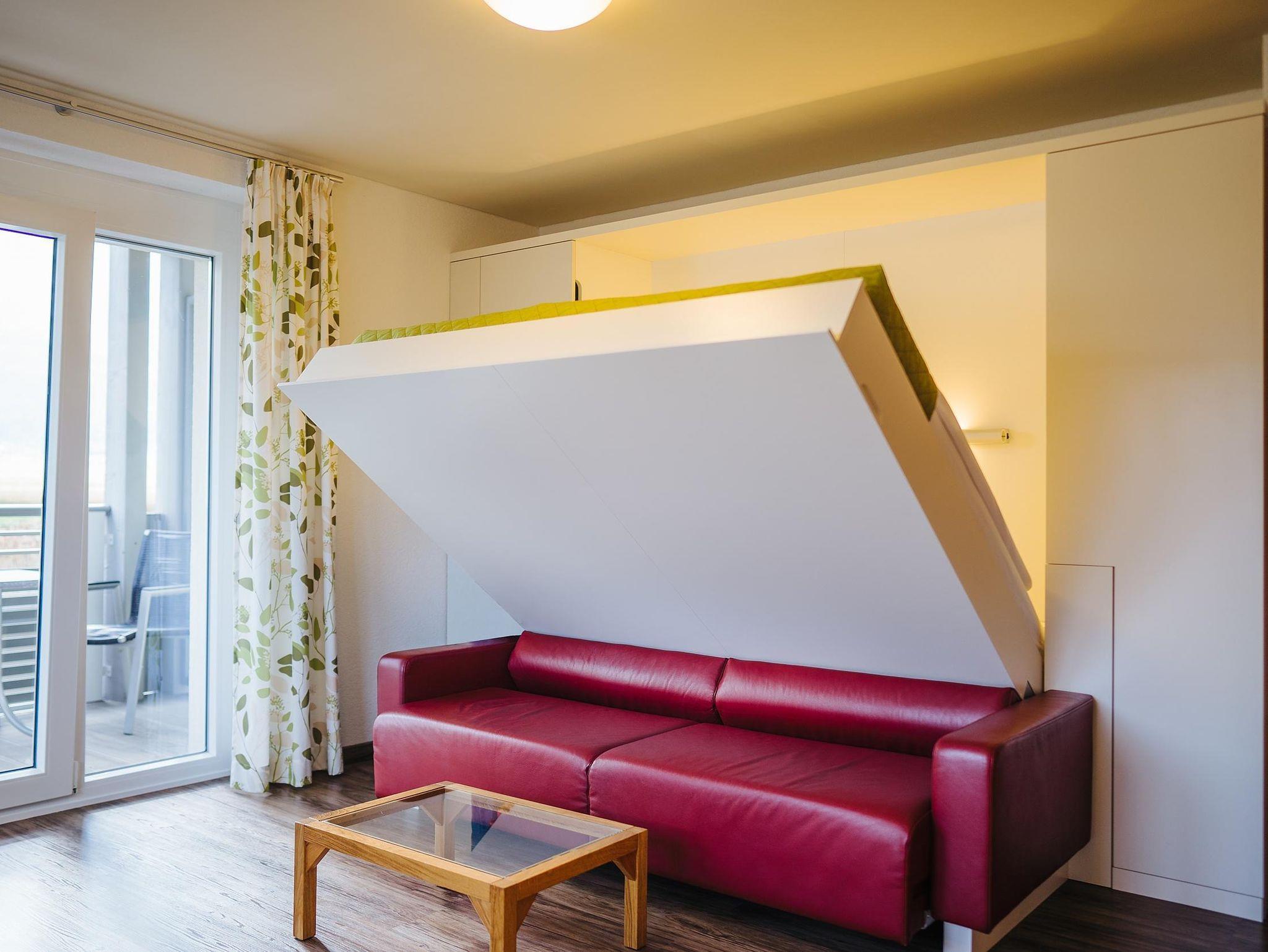 Diese komplett NEUEN und MODERNEN sowie rollstuhlgerechten/ barrierefreien Suiten bestehen aus je einem Vorraum mit Küche, Wohn/Schlafraum, zwei separaten Schlafzimmern, Badezimmer mit Dusche/WC und je einer herrlichen Dachterrasse Richtung Süden bzw. Südosten oder Südwesten.