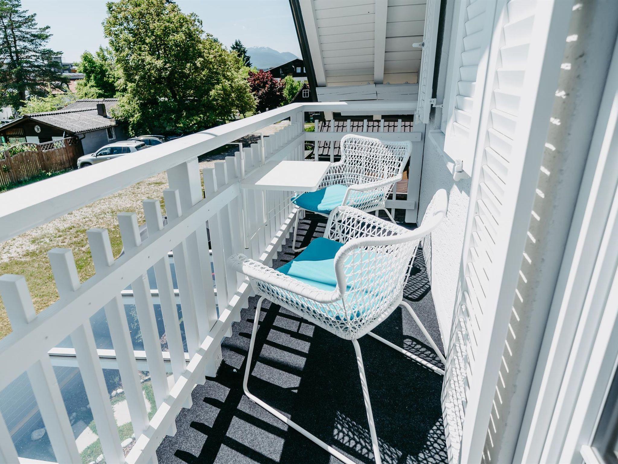 • Möglichkeit zur Beschattung der Fenster und Balkontüren mit Klappläden mit schrägen Belüftungslamellen