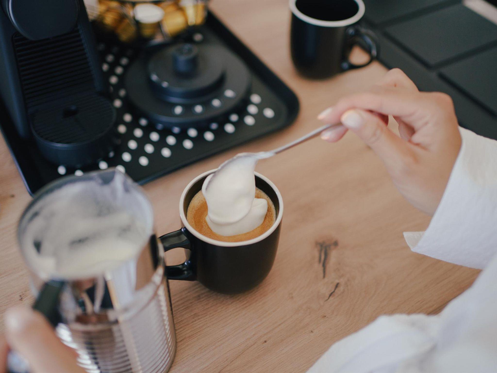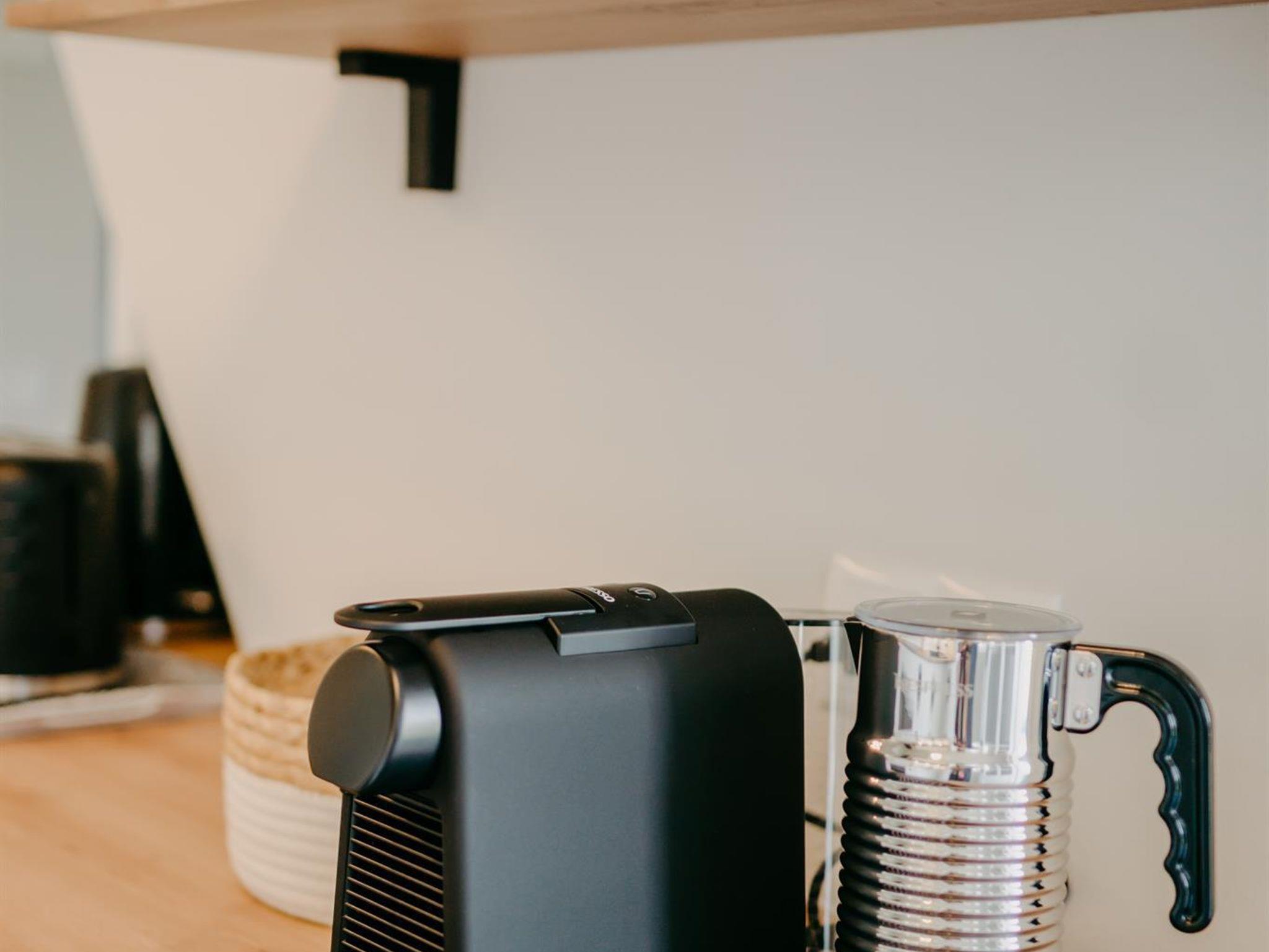 • komplett ausgestattete Wohnküche mit Geschirrspüler, Kühlschrank mit Gefrierfach, besonders gut ausgestattet mit Geschirr und Besteck für Selbstversorger, Nespresso-Kaffeemaschine und -Milchschäumer