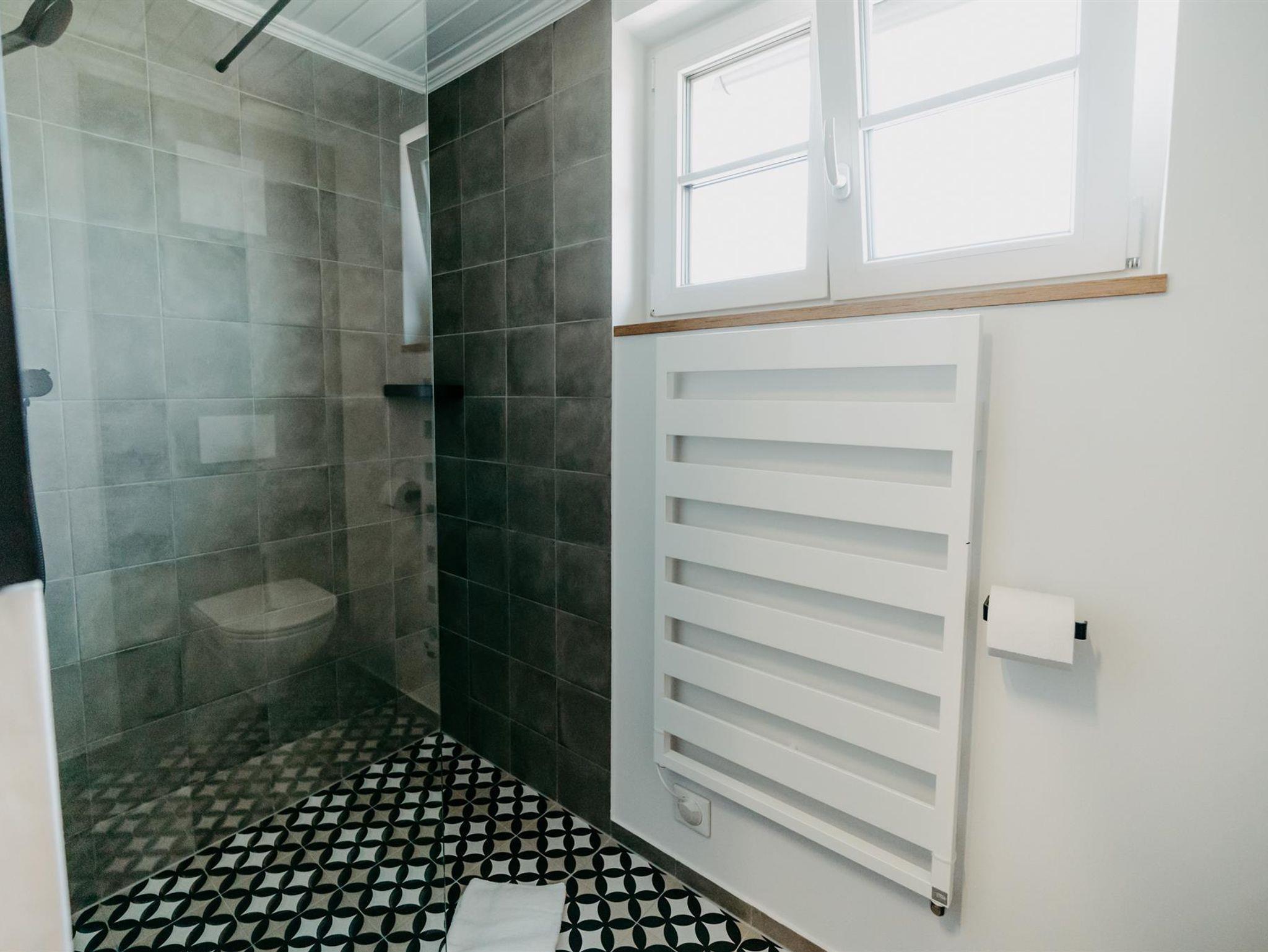 • Dusche, WC mit Fenster , mit Air-WC plus Raumventilator, Fußbodenheizung und Handtuchwärmer
