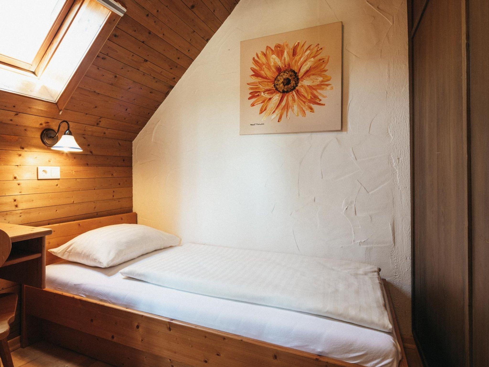 Im Parterre mit einer Wohnfläche von ca. 35 m², augestattet mit Küchenzeile, Wohnraum mit Sitzgruppe (2 Sitz-/Schlafcouches), Kachelofen und Essecke, kleines Schlafzimmer mit Etagenbett, Dusche, WC.