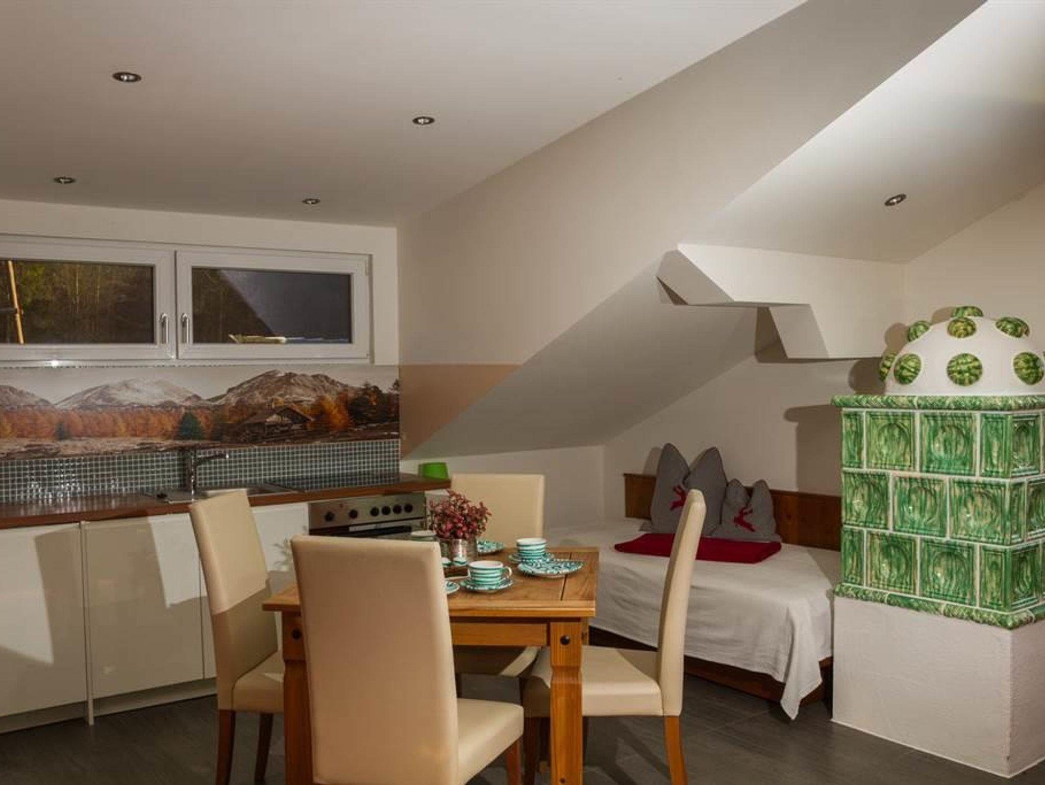• Flat-TV, Kachelofen