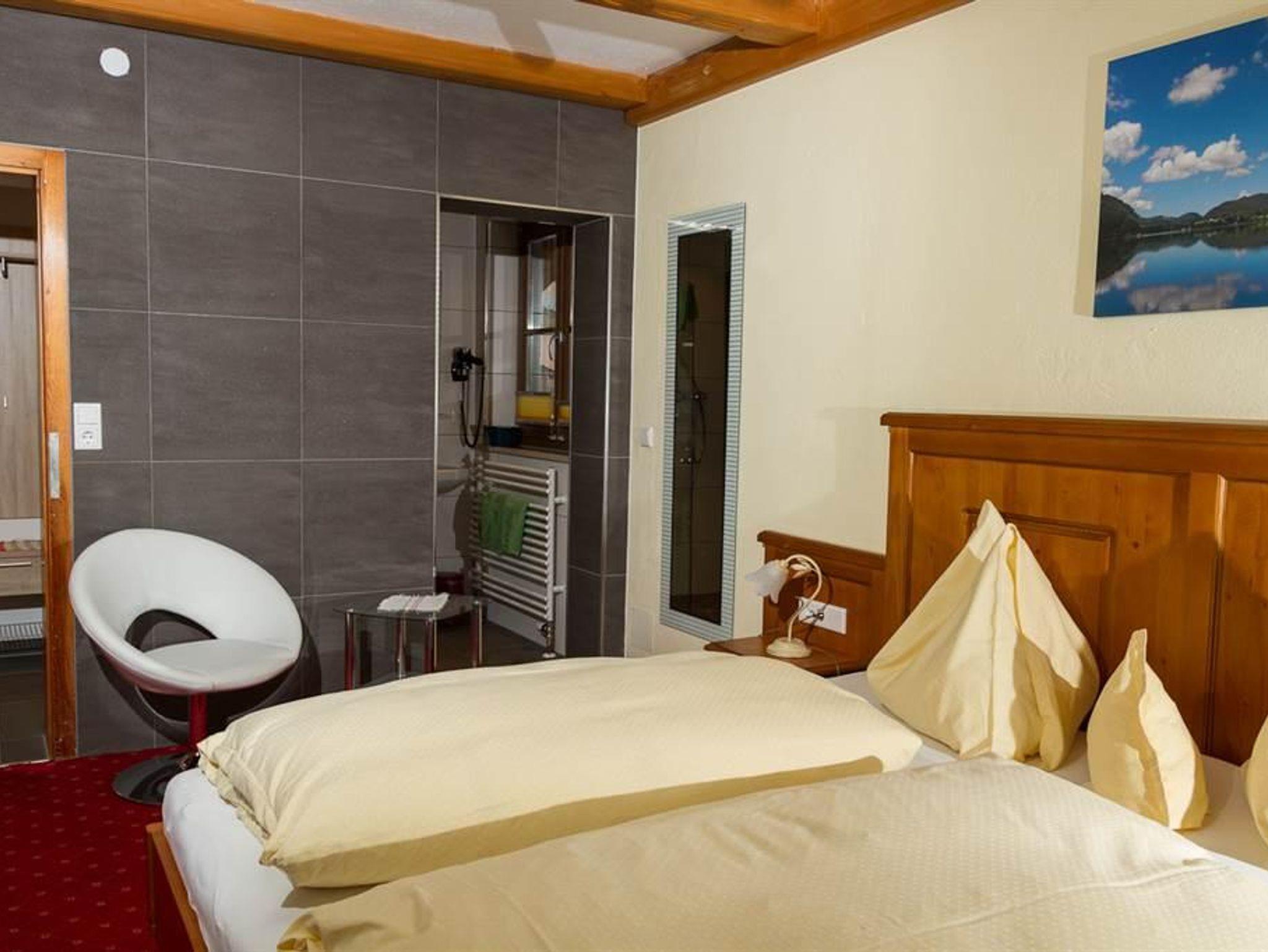 Sie können wählen zwischen Doppelzimmern oder Ferienwohnungen mit einem herrlichen Blick auf die Berge und den See.