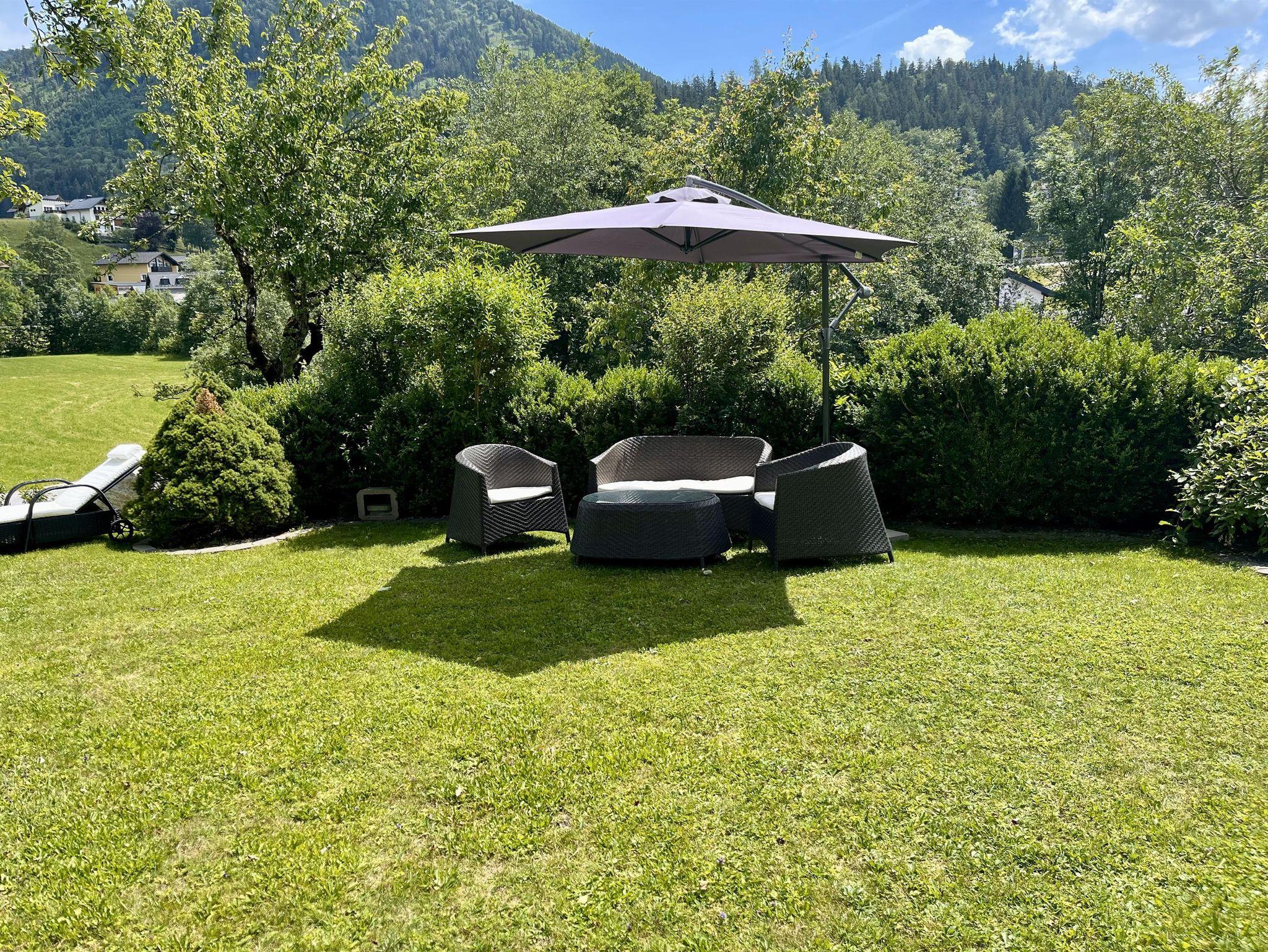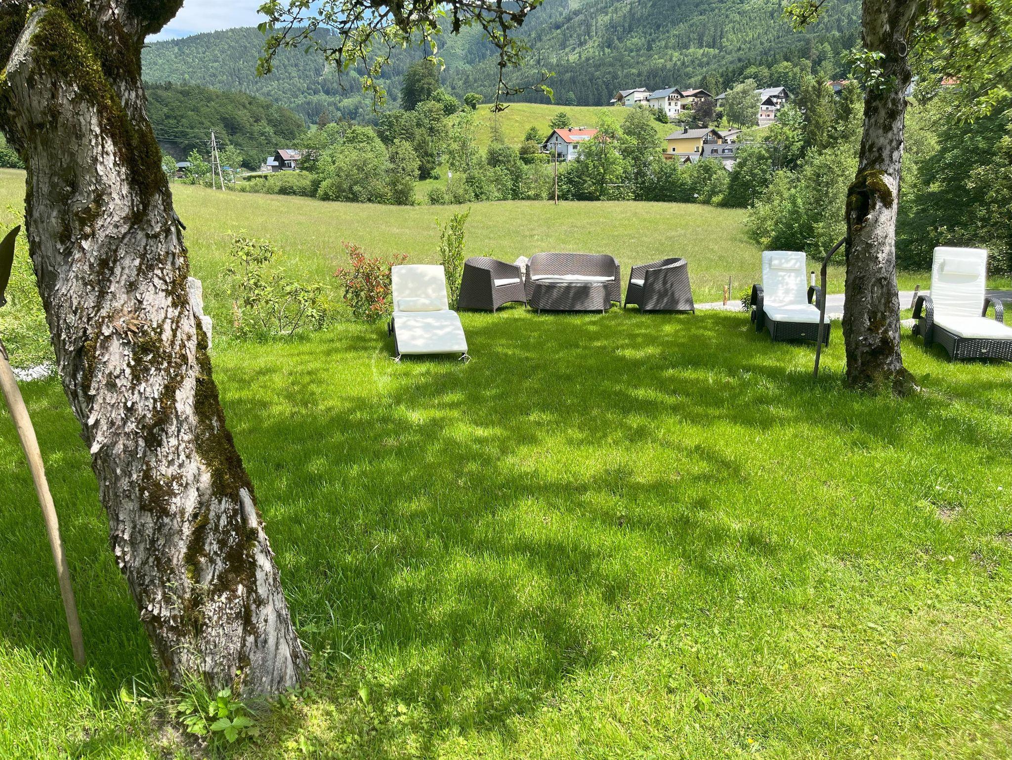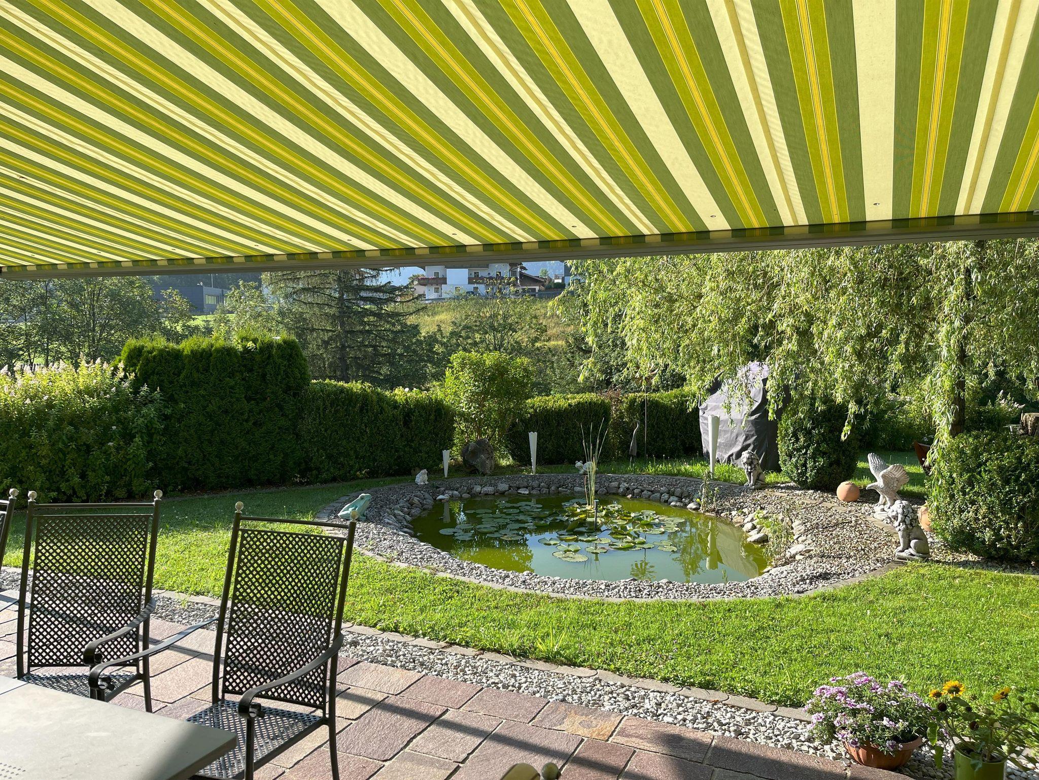 Entspannung pur bietet unser groß angelegter sonniger ruhiger Garten mit Biotop, genießen sie gemütlich im Liegestuhl die frische Luft und die herrliche Bergkulisse.