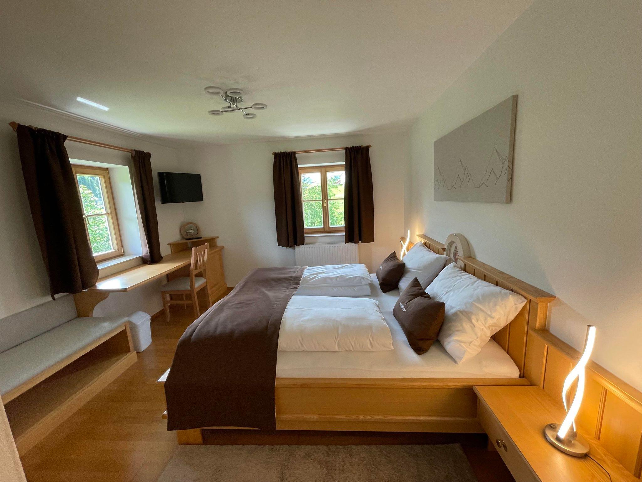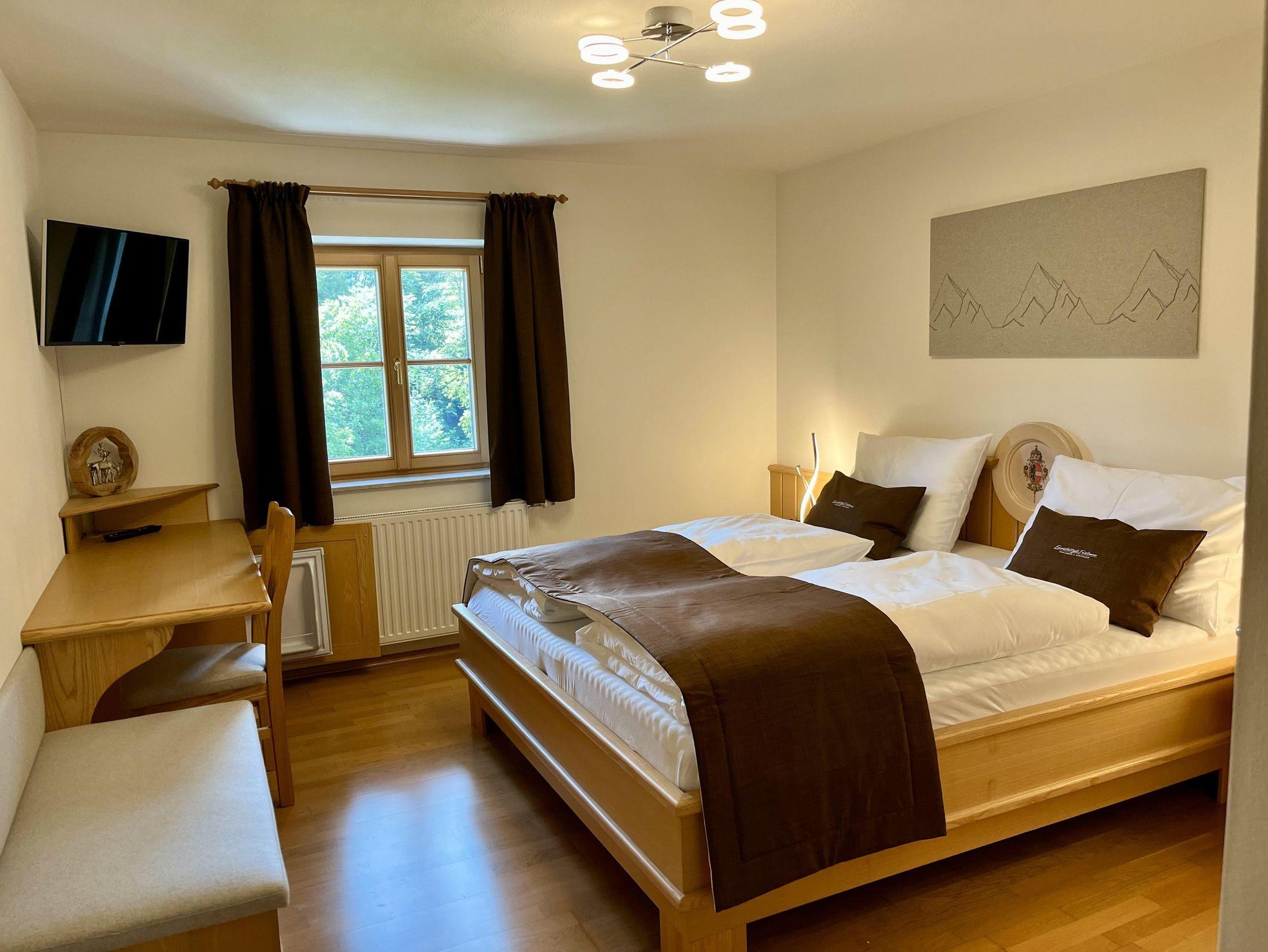 Genießen Sie unsere neu eingerichteten Zimmer im Romantischen Stil, mit einem herrlichen Ausblick auf die Berge. Diese sind mit Dusche/WC, Fön, Flat SAT-TV, Schreibtisch, Kofferbock und Kühlschrank ausgestattet. Alle Zimmer sind Nichtraucher Zimmer! Hunde sind nicht erlaubt.