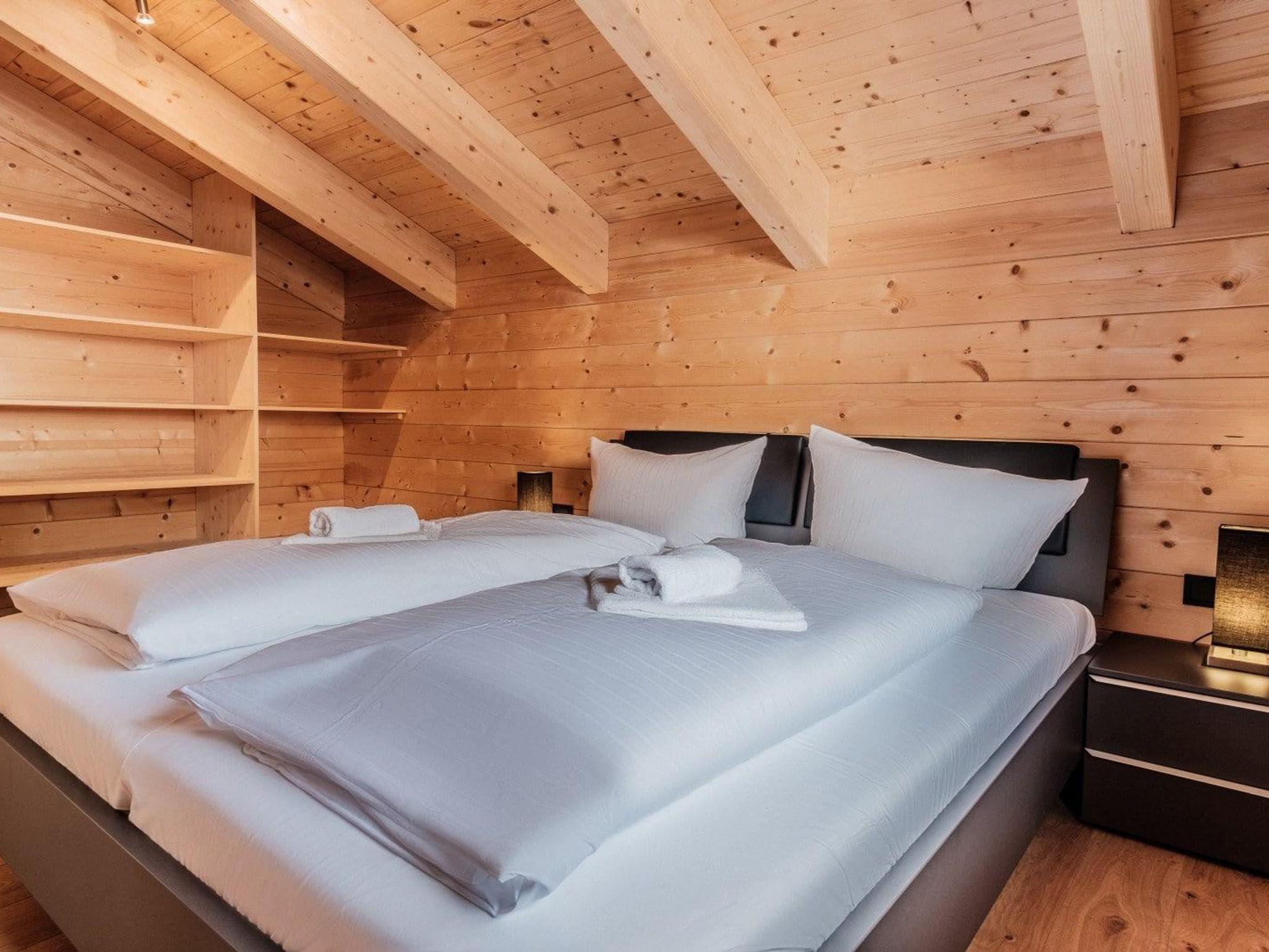 Die 2021 neu errichteten 4 Luxuschalets „Bergwinter“ liegen direkt an der Baumgrenze am Fuße der Heidialm mit herrlichem Bergpanorama und direktem Zugang zum Skigebiet. Sie bieten mit 145m² Wohnfläche zzgl. der Terrassen und Balkone über 2 Wohnebenen reichlich Platz für Erholung und die ganze Familie. Der Wohn- und Wellnessbereich sowie die Panoramaterrasse befinden sich im Erd- und die 3 großzügigen Schlafzimmer im Obergeschoss. Insgesamt gibt 3 Doppelbetten und 2 Schlafsofas sowie Babybetten, sodass die maximale Gästeanzahl 10 Personen (6 Erwachsene, 2 Kinder und 2 Babys) beträgt.