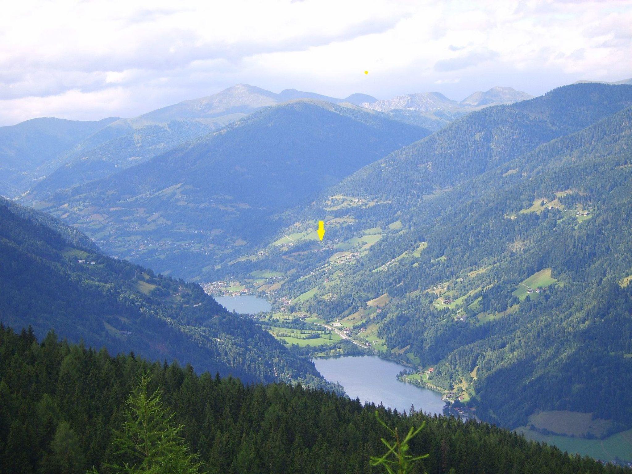 The very quiet and independent holiday apartment with its own separate entrance enjoys a unique and beautiful location at an altitude of 1000 metres, above the little village of Feld am See in Carinthia near the World Cup ski resort of Bad Kleinkirchhein. The 50m² apartment for 2-4 people (ideally two adults with one or two children) occupies the whole ground floor of a three-storey, detached house with a garden, a terrace and parking space. All the windows in the apartment and the garden afford breathtaking panoramic views of the garden, forests, the Nockberge, the valley and two lakes. The accommodation is ideal for those seeking peace and quiet, for couples and families looking for a quiet and private starting point for exploring Carinthia and enjoying summer and winter sports and activities.Very quiet holiday apartment with a 360° panoramic view of mountains and two lakes, with a garden, a terrace, a grill and parking space