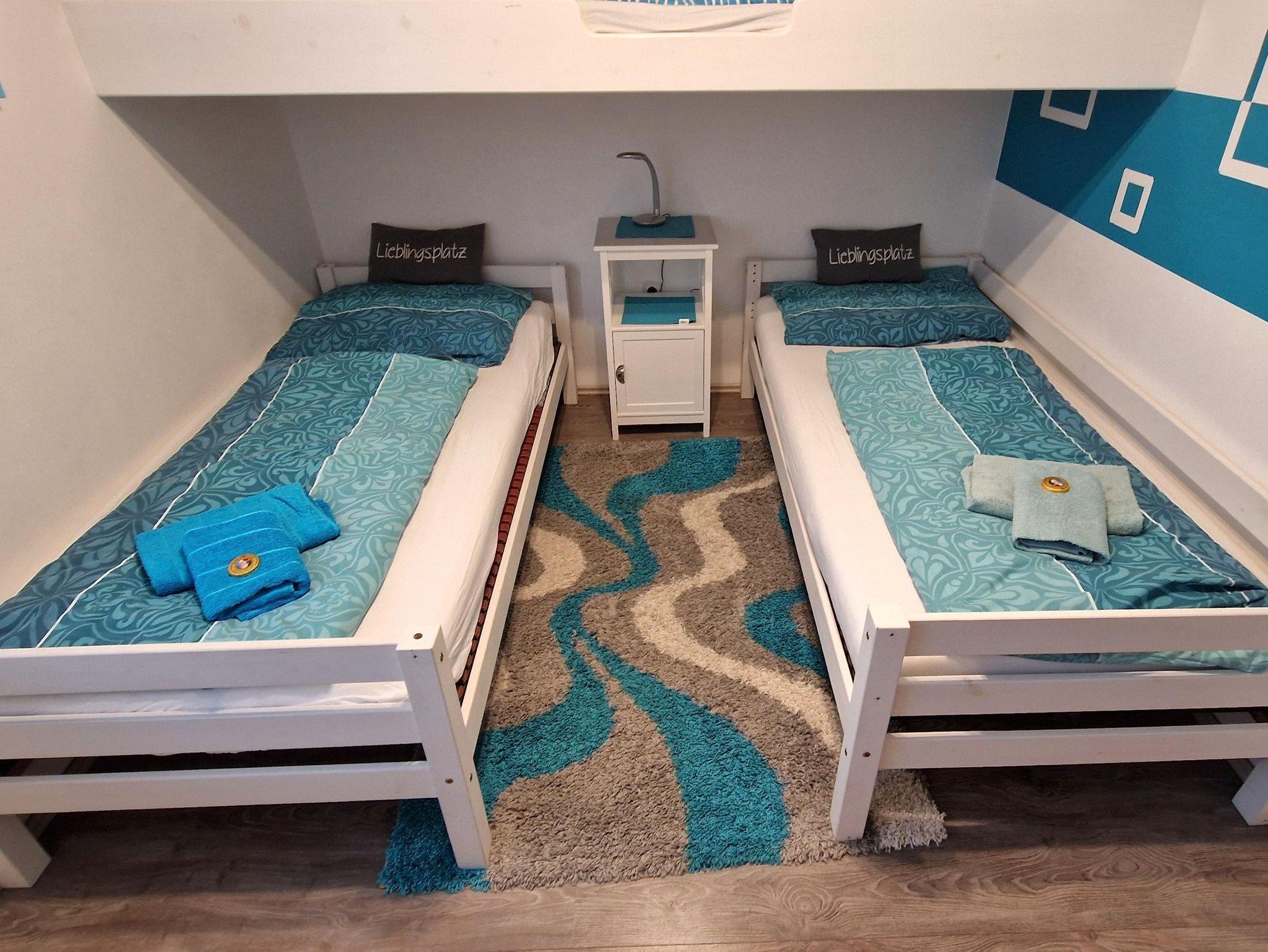 Die Ferienwohnung befindet sich im Erdgeschoß und stellt sich auf folgenden Räumen zusammen: Komplett eingerichtete Küche, Esszimmer, Wohnzimmer mit Schlafsofa, 1 Schlafzimmer mit Doppelbett, 1 Schlafzimmer mit 3 Einzelbetten. Gratis WIFI in der gesamten Wohnung. Nichtraucherwohnung!