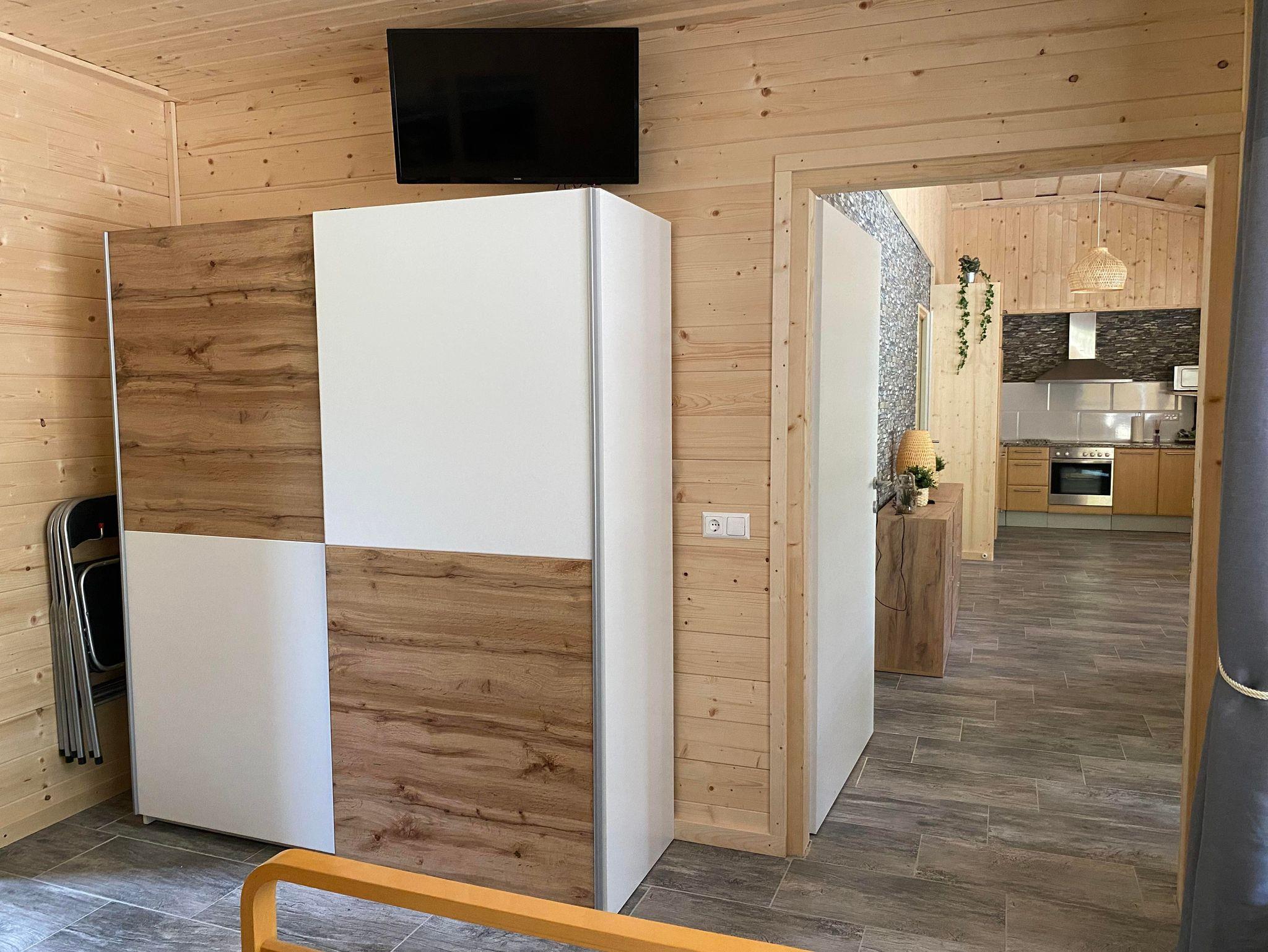 In Juni 2022 fertig gestellte behindertengerechte/barrierefreie Bungalows für Jedermann. Ob für Familien, Senioren oder Behinderte- sie sind für alle geeignet. Fischen im Rollstuhl möglich. Direkter Zugang zum Privatstrand mit Geländer, um in den See zu kommen. See ist nicht gleich tief, die ersten paar Meter sind seicht. Bungalow 1 bietet Platz für max. 8 Personen und Bungalow 2 und 3 sind beide geeignet für 6 Personen. Auch Gruppenferien sind möglich. Haus 2 und 3 können mit einander gekoppelt werden. Jeder Bungalow hat ein behindertengerechtes Badezimmer und Schlafzimmer. In Bungalow 1 gibt es noch 2 Doppelzimmer extra und in Bungalow 2 und 3 ist jeweils ein Doppelzimmer und ein kleineres Zimmer mit Stockbett vorhanden. Man kann mit Hoch-niederig Betten direkt auf die Terrasse fahren. Viel Platz zum Leben. Der Strand wird von alle Gäste benützt. Eislaufplatz vor der eigenen Haustür. Kurz gesagt - für Jedermann ist etwas dabei. Waschmachinebenützung nur auf Anfrage und gegen Gebühr möglich. In der Bungalow ist kein Waschmachine.