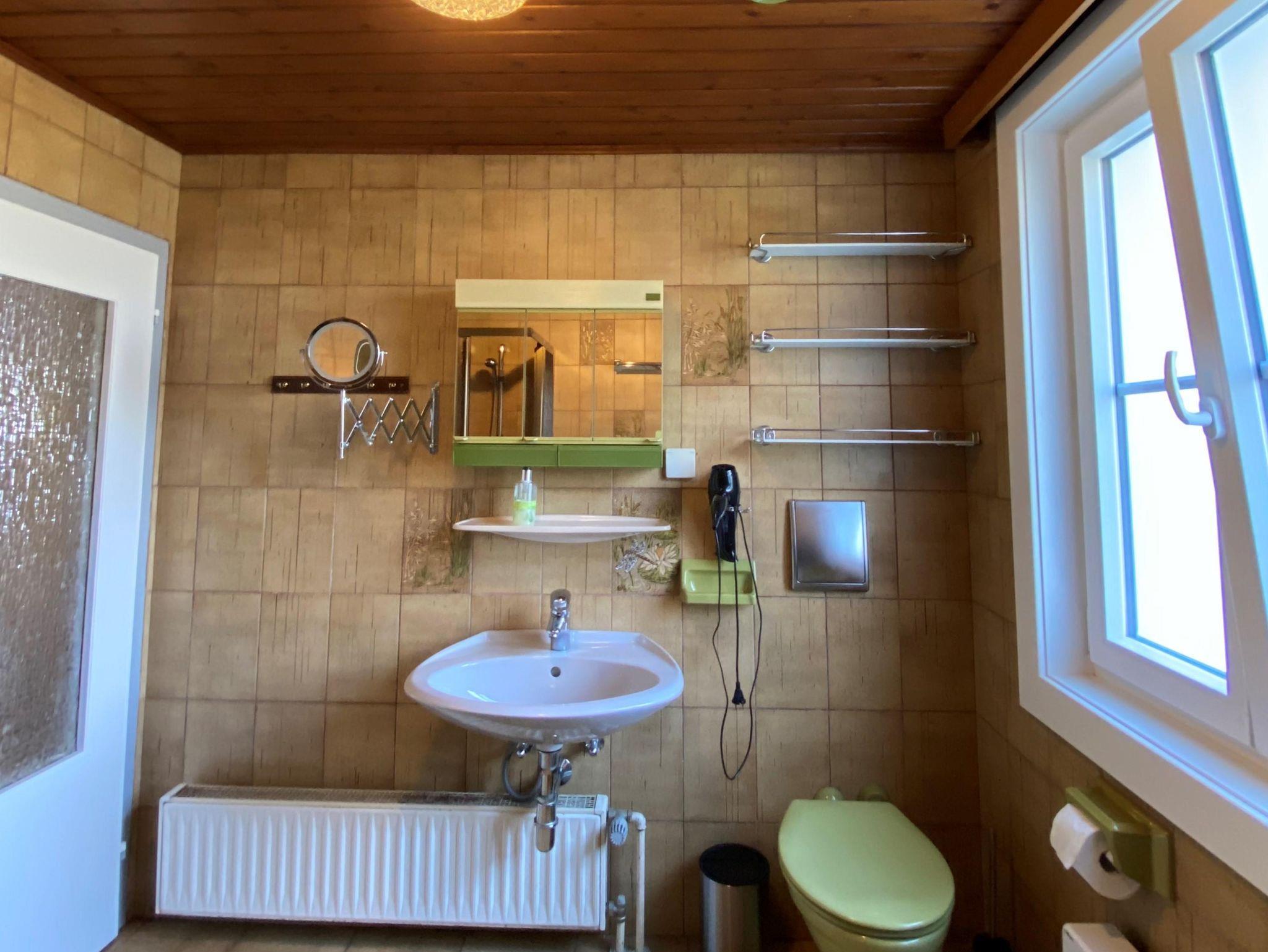 • 1 Badezimmer mit Badewanne, Dusche, WC, Waschbecken, Fön, Kosmetikspiegel