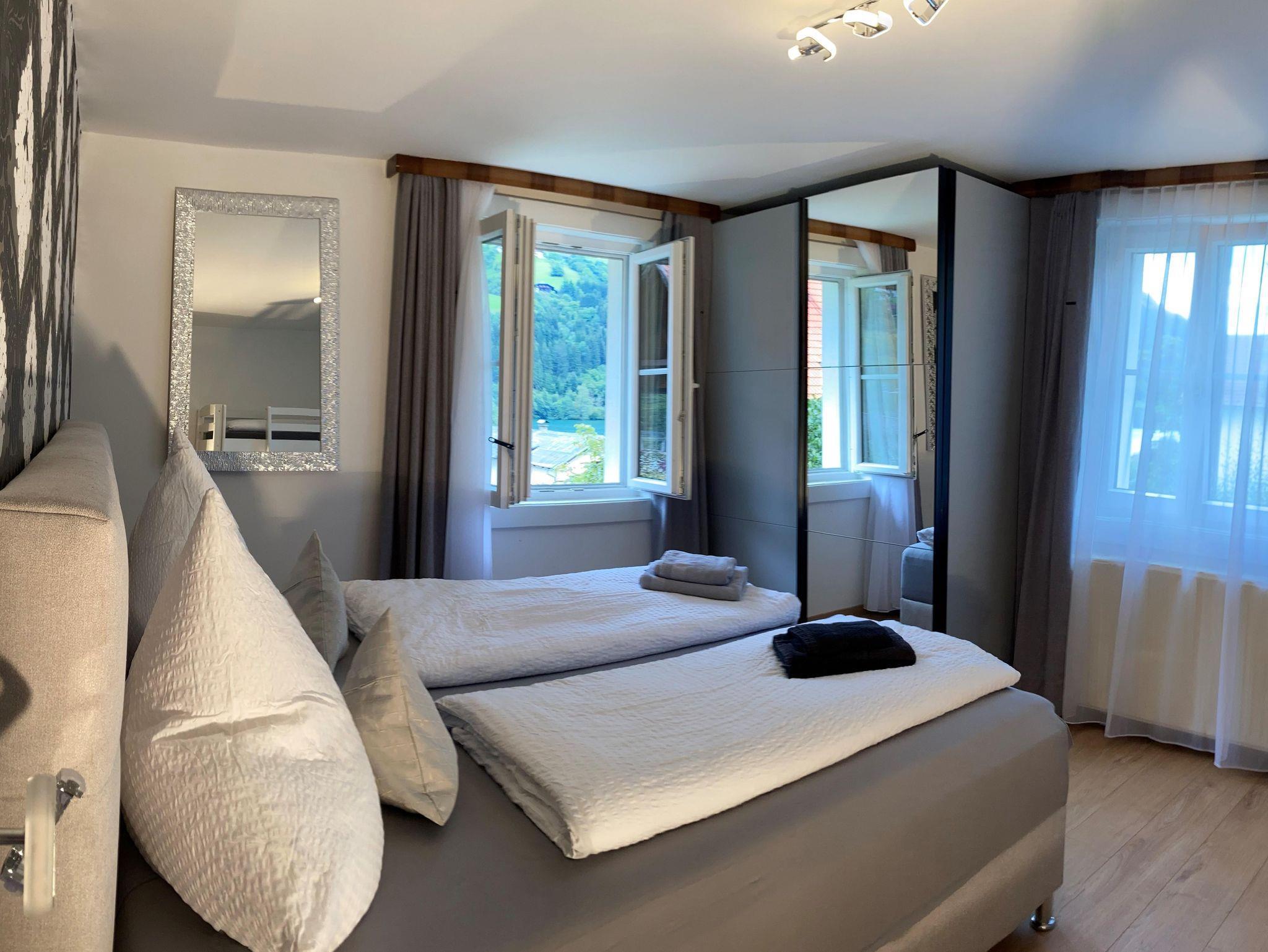 Gemütliche Erdgeschoss-Wohnung für bis zu 6 Personen (60 m²) mit sehr schönem Seeblick. Die Schlafzimmer und Küche wurde kürzlich renoviert, wobei der urige und rustikale Charme der Wohnung erhalten wurde.