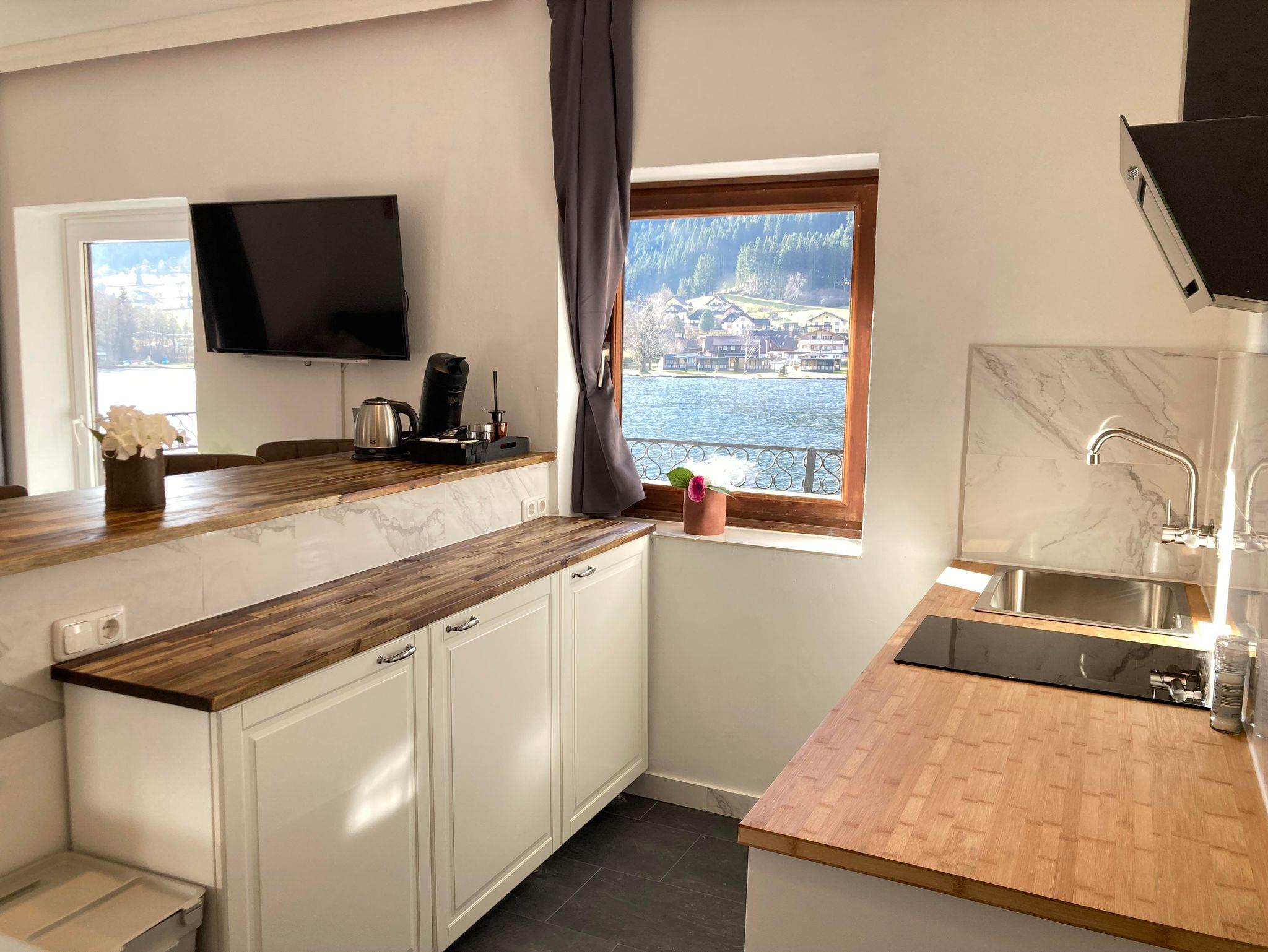 Geräumiges Apartment mit 1 Schlafzimmer mit Hotel-Boxspringbetten, einem gemütlichen Wohnzimmer mit einem Doppelschlafsofa. Zauberhaften Ausblick, Balkon mit Möbel. Voll ausgestattete Küche mit Geschirrspüler, Kühl-/Gefrierschrank, Senseo-Maschine, Wasserkocher, Dunstabzugshaube usw. Das Badezimmer verfügt über ein Waschbecken, eine ebenerdige Dusche und Toilette. Das gemütliche Wohn-/Esszimmer bietet direkten Blick auf den See. Android-TV und kostenloses WLAN, gute Betten und viel zu unternehmen und zu sehen in der Umgebung, machen dieses Apartment zu einem großartigen Ausgangspunkt für Ihren Urlaub.