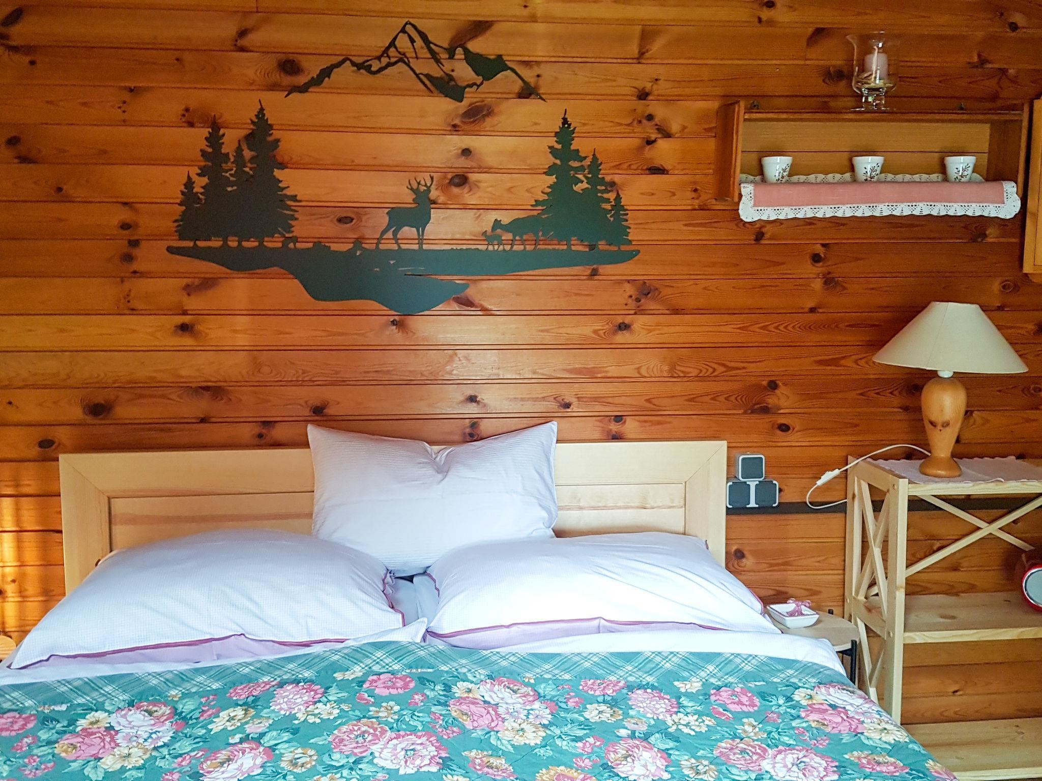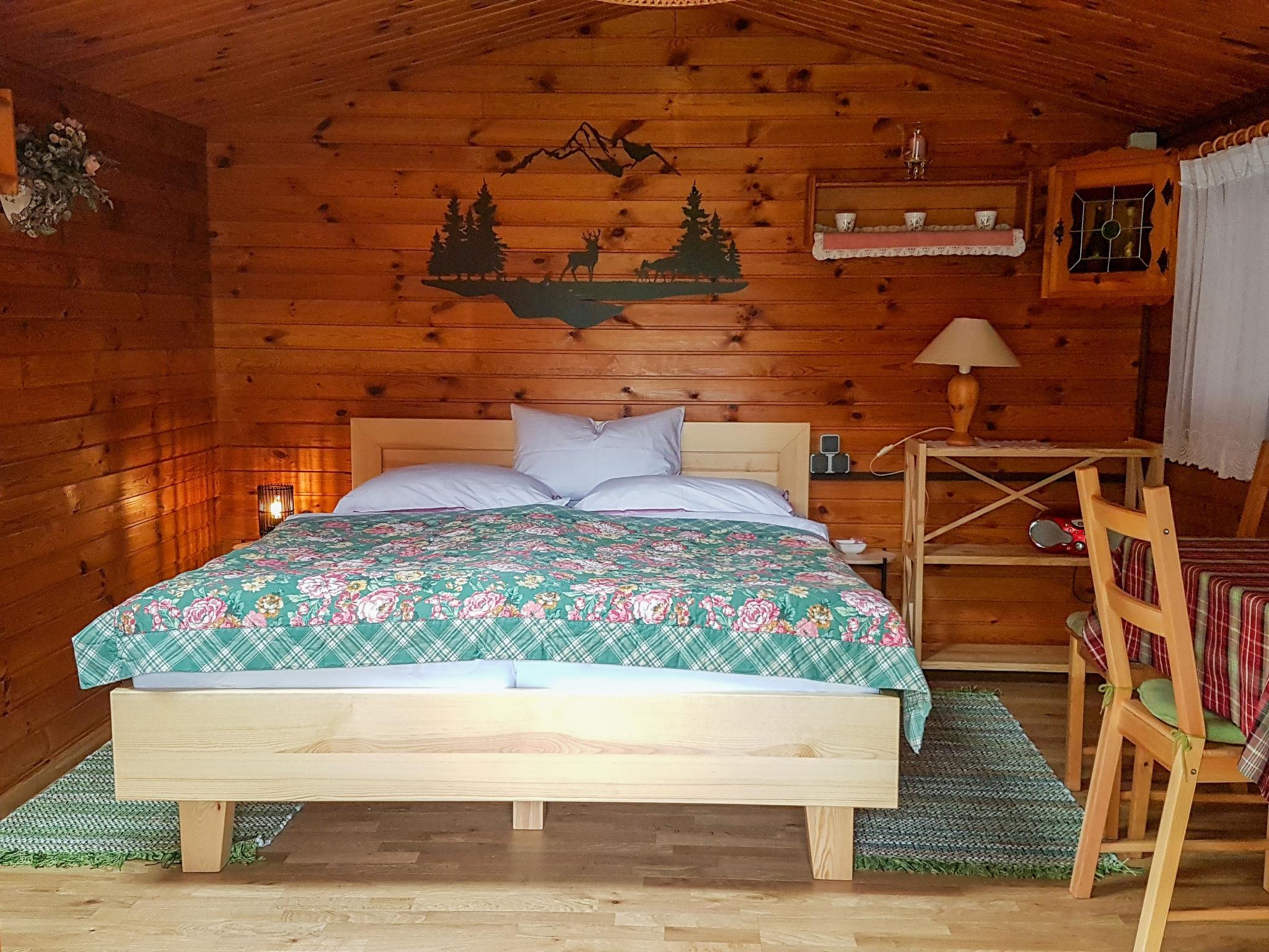 "Saurachberghütte", 3-room house 55 m2. Rustic and cosy furnishings: living/dining room with 1 sofabed, Scandinavian wood stove, dining nook and satellite TV. 1 room with 2 beds. 1 room with 1 double bed, 1 pull-out bed and electric heater. Exit to the garden. Open kitchen (oven, 2 ceramic glass hob hotplates, toaster, kettle, electric coffee machine). Shower/WC. Heating not available in all rooms. Wooden floors. Balcony, terrace. Terrace furniture, barbecue, deck chairs (2). Marvellous panoramic view. Facilities: baby cot. Internet (WiFi, free). Please note: smoke alarm. No internal connecting door between the separated properties.