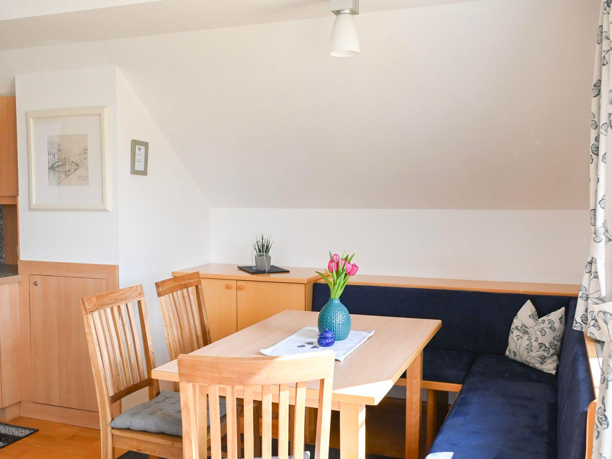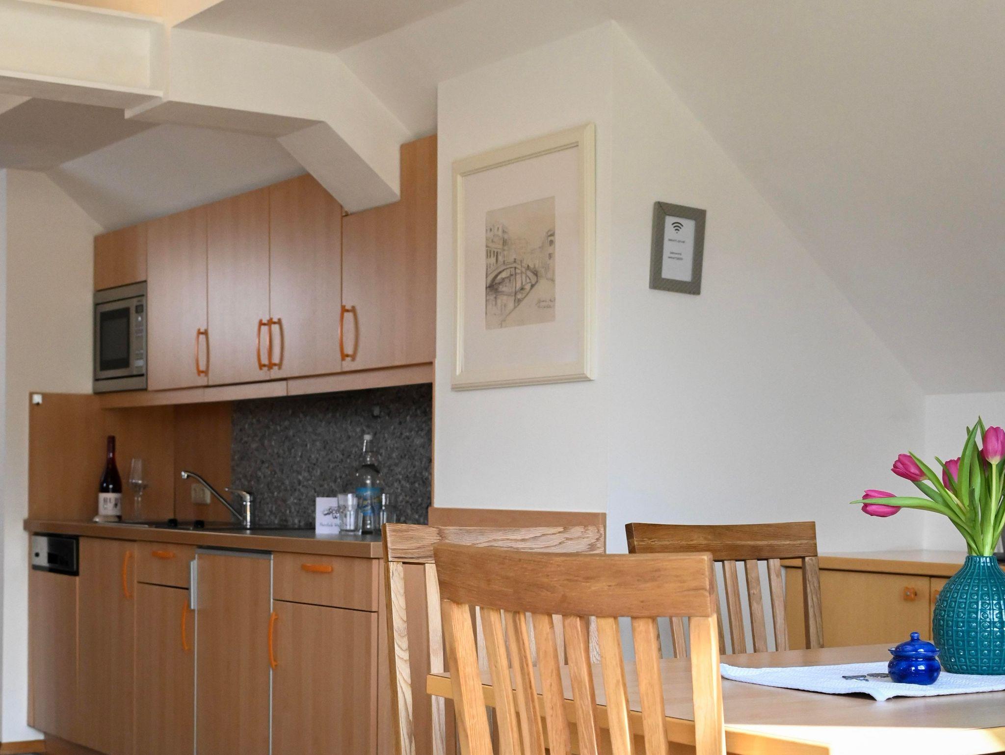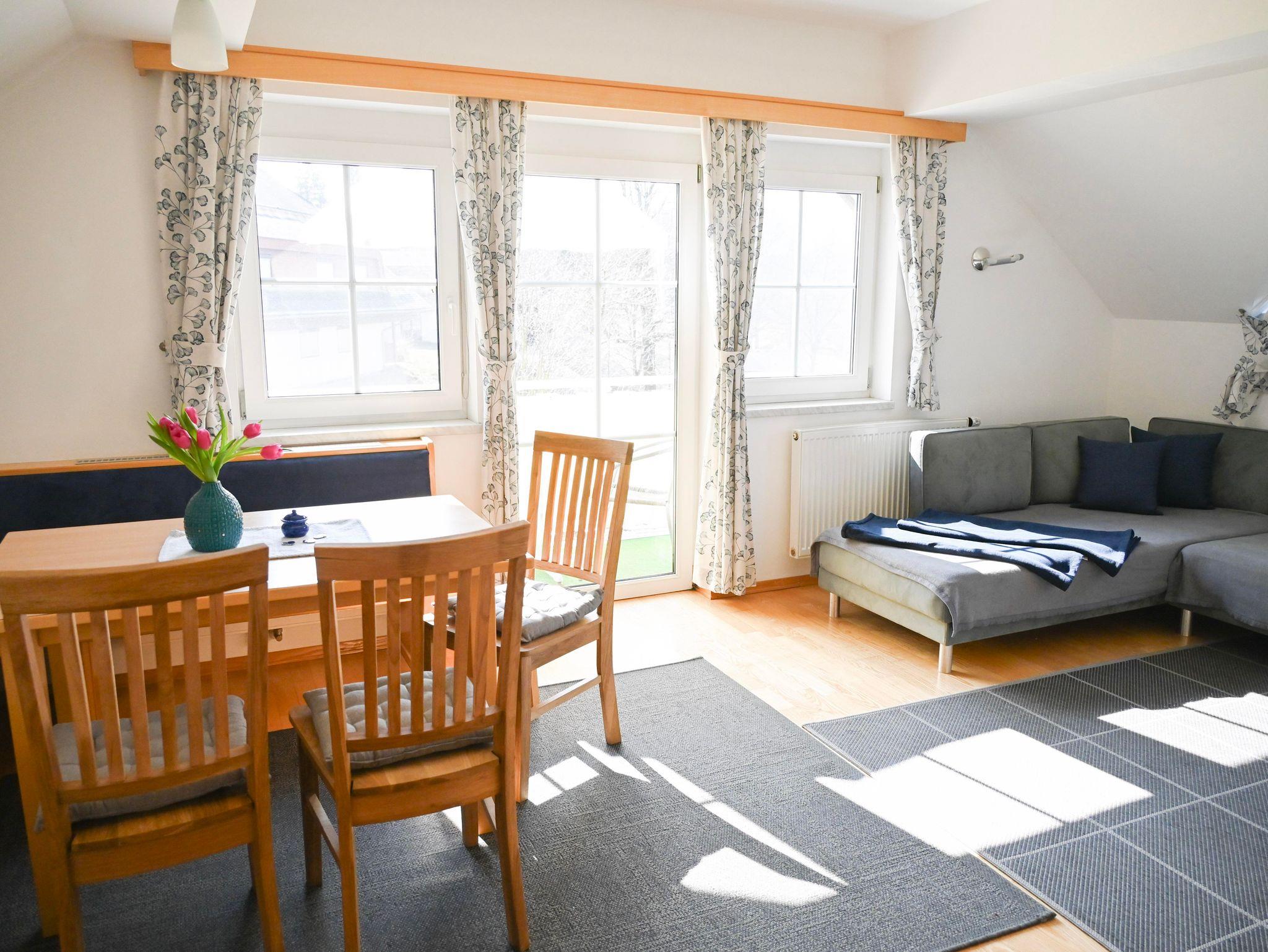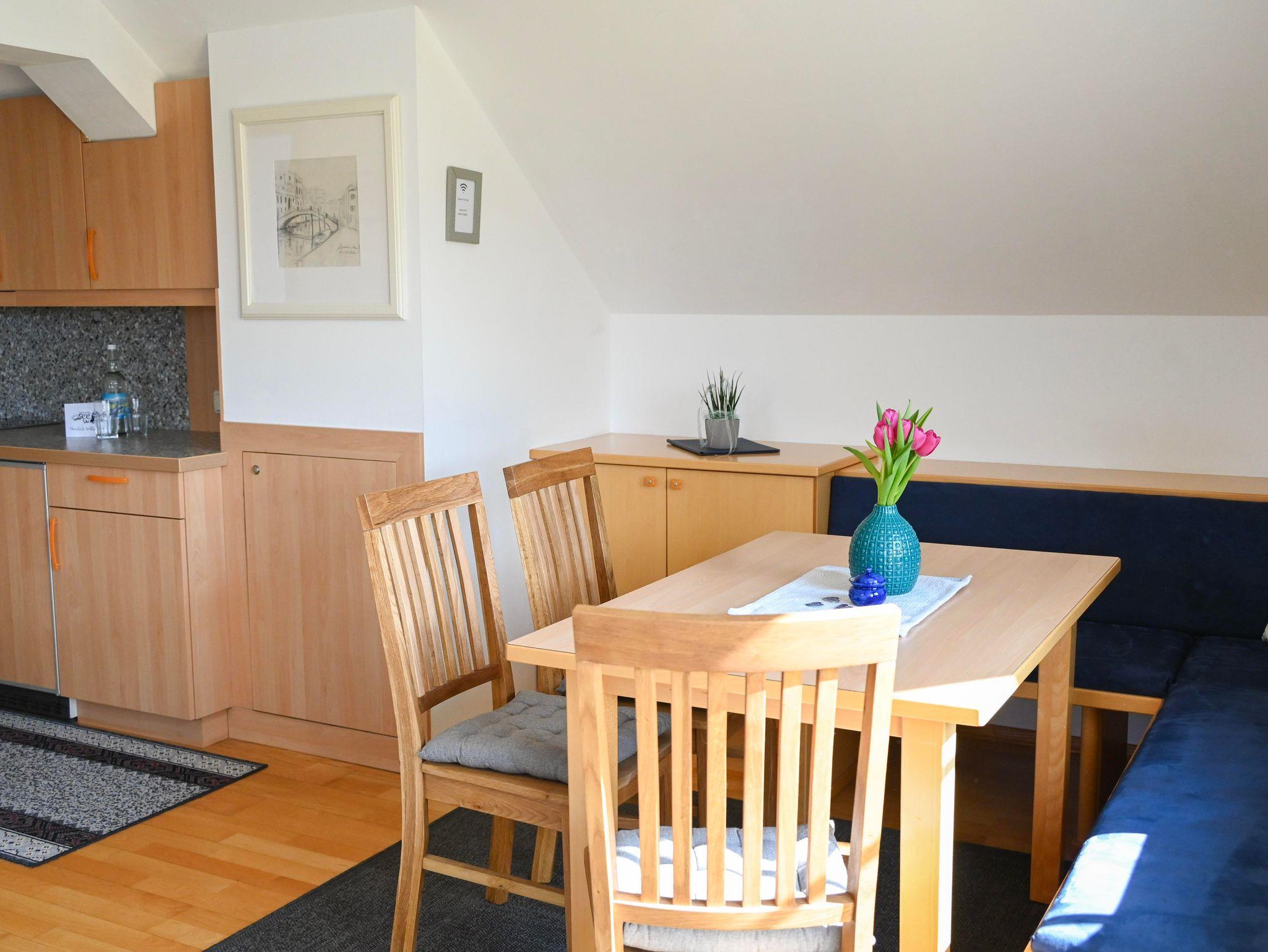 Apartment 1 großen Wohn-/Schlafraum mit Küche, 2 Schlafräume, Südbalkon, im 2. Stock Komplett ausgestattet mit Heizung, Bettwäsche, Bade- und Handtücher, Seeblick-Balkon mit Liegestühlen, Vorraum mit Garderobe und Schuhputzzeug, Bad und WC getrennt, Föhn, Schminkspiegel Küche: Geschirrspüler, Kühlschrank, E-Herd, Mikrowelle, Kaffeemaschine, Geschirr, Sat-TV, Telefon, Safe