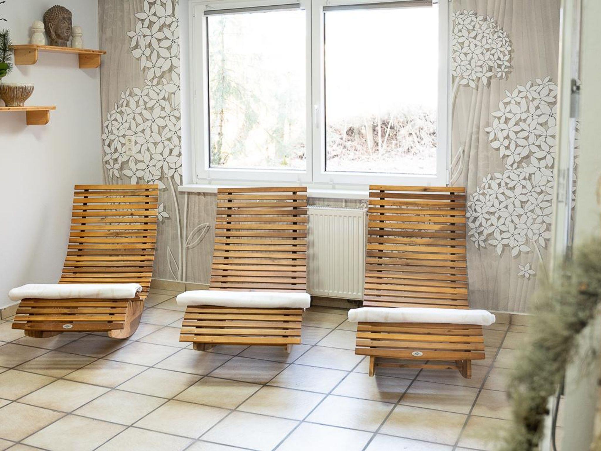 Entspannen sie sich in im eigenen Hallenbad (geöffnet v. 1. Mai bis 30. September) in der Sauna (geöffnet v. 1. April bis 30. September) oder auf unserer Terrasse und Liegewiese.