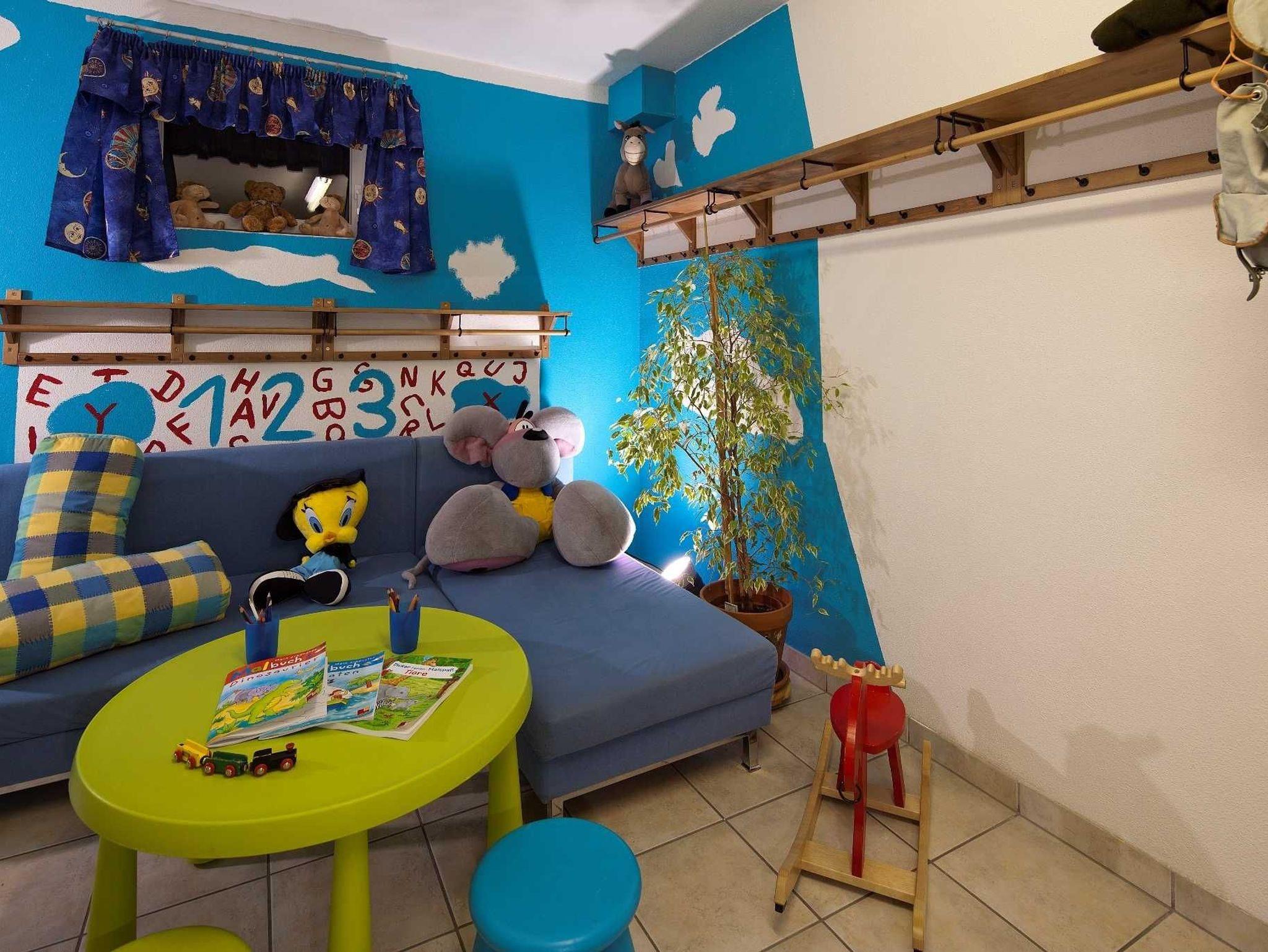 Damit Sie sich fast wie zu Hause fühlen, wartet auf Sie ein Spielzimmer mit Tischtennis, Dart, Tischfußball, Malecke sowie im Sommer Tischtennis, Badminton, Spielplatz (Sandkiste, Schaukel ), Trampolin,...