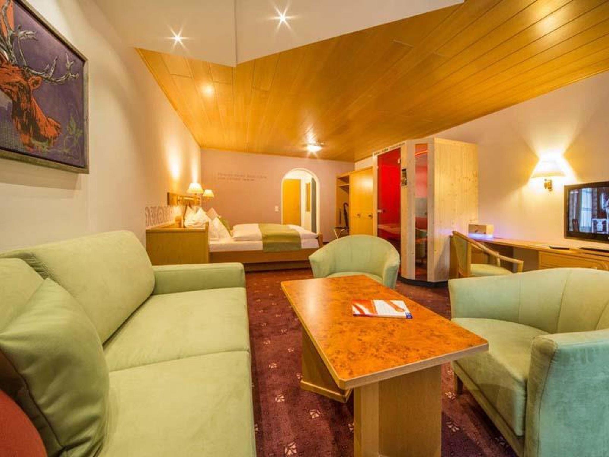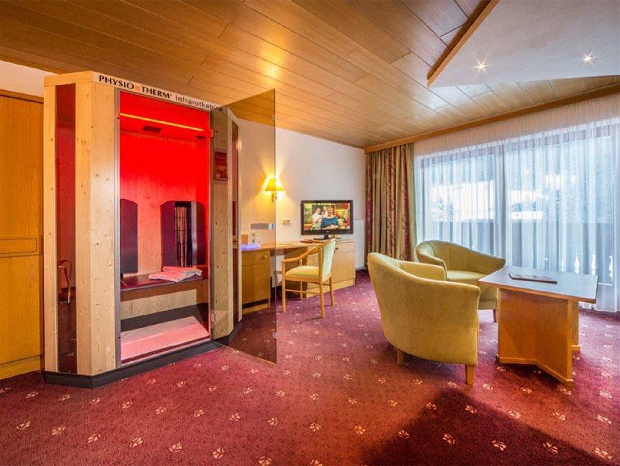 Hotelsuite Edelweiss mit Südbalkon - mit Infrarotkabine und Zirbenlüfter. Mit 36m² - auch als 3-Bett bzw. 4-Bett-Zimmer möglich. Neu renoviert, sehr gemütlich, mit Flat-TV, Gratis-W-Lan, Dusche und sep. WC. Weitere Infos unter www.alpenhof.com