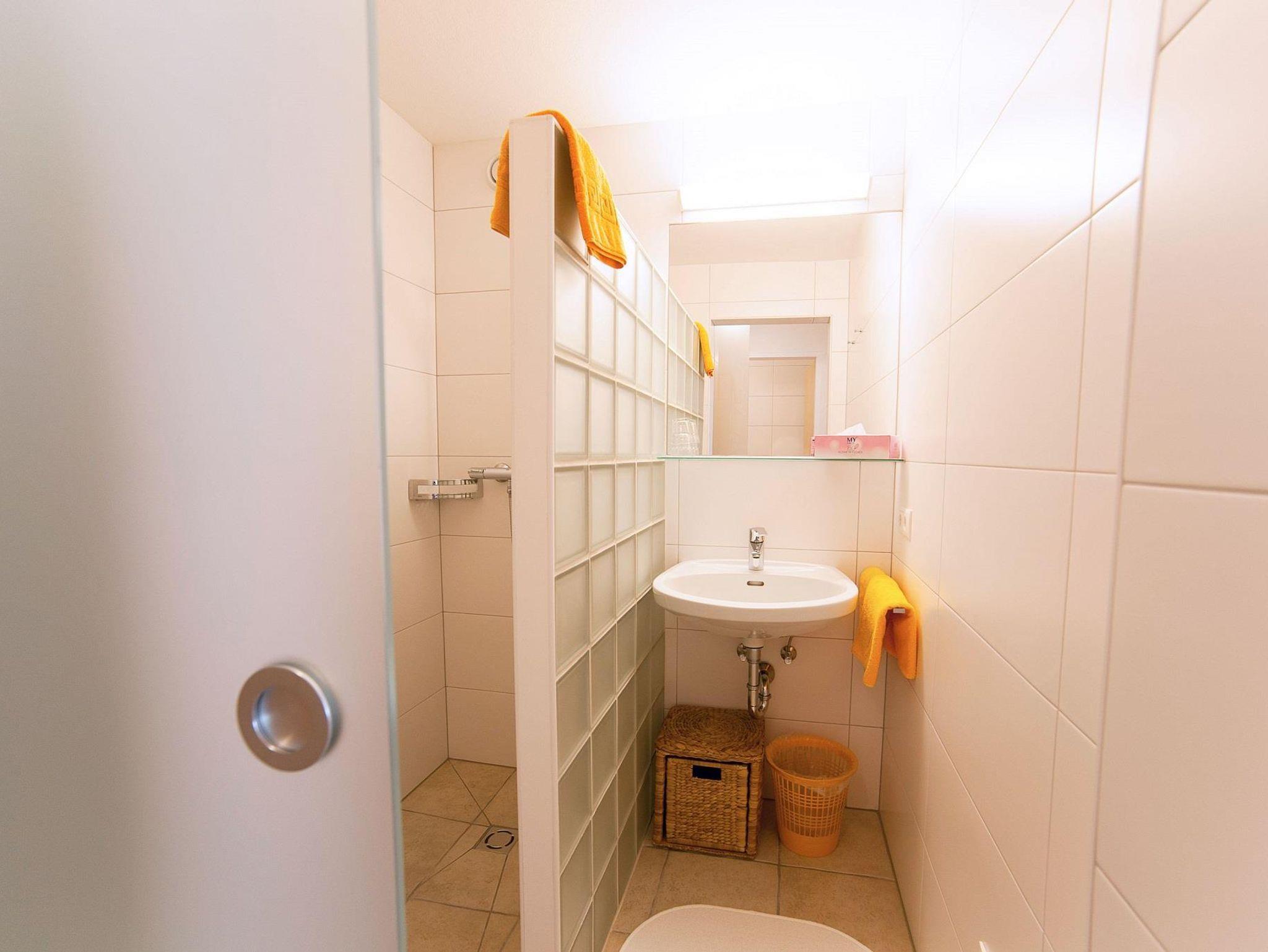 Geräumiges, helles Familienzimmer mit Balkon und Parkettboden, ca. 20 - 21 m², mit Doppelbett und Zusatzbett. Badezimmer ca. 4 - 6 m² mit Dusche und teils getrenntem WC, Internet per W-lan kostenlos. Zimmerausstattung: Tisch und Stühle, Schrank, Heizung, Flachbild Sat-TV, Radio, Föhn, Wasserkocher, Wäschespinne, Balkon.