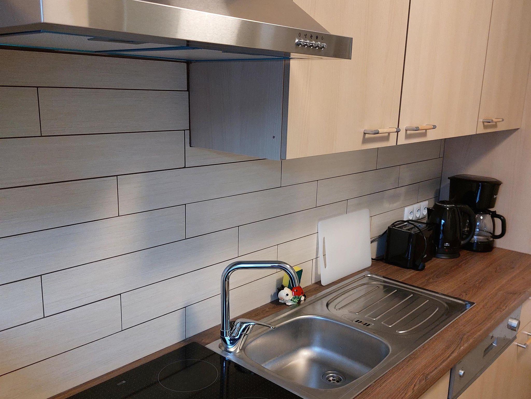 1 voll ausgestattete Küche. Herd mit Backrohr, Mikrowelle, Kühlschrank mit Gefrierteil, Toaster, Kaffeemaschine, Wasserkocher, Geschirrspüler, Küchentücher, Geschirr, Besteck, Gläser.....