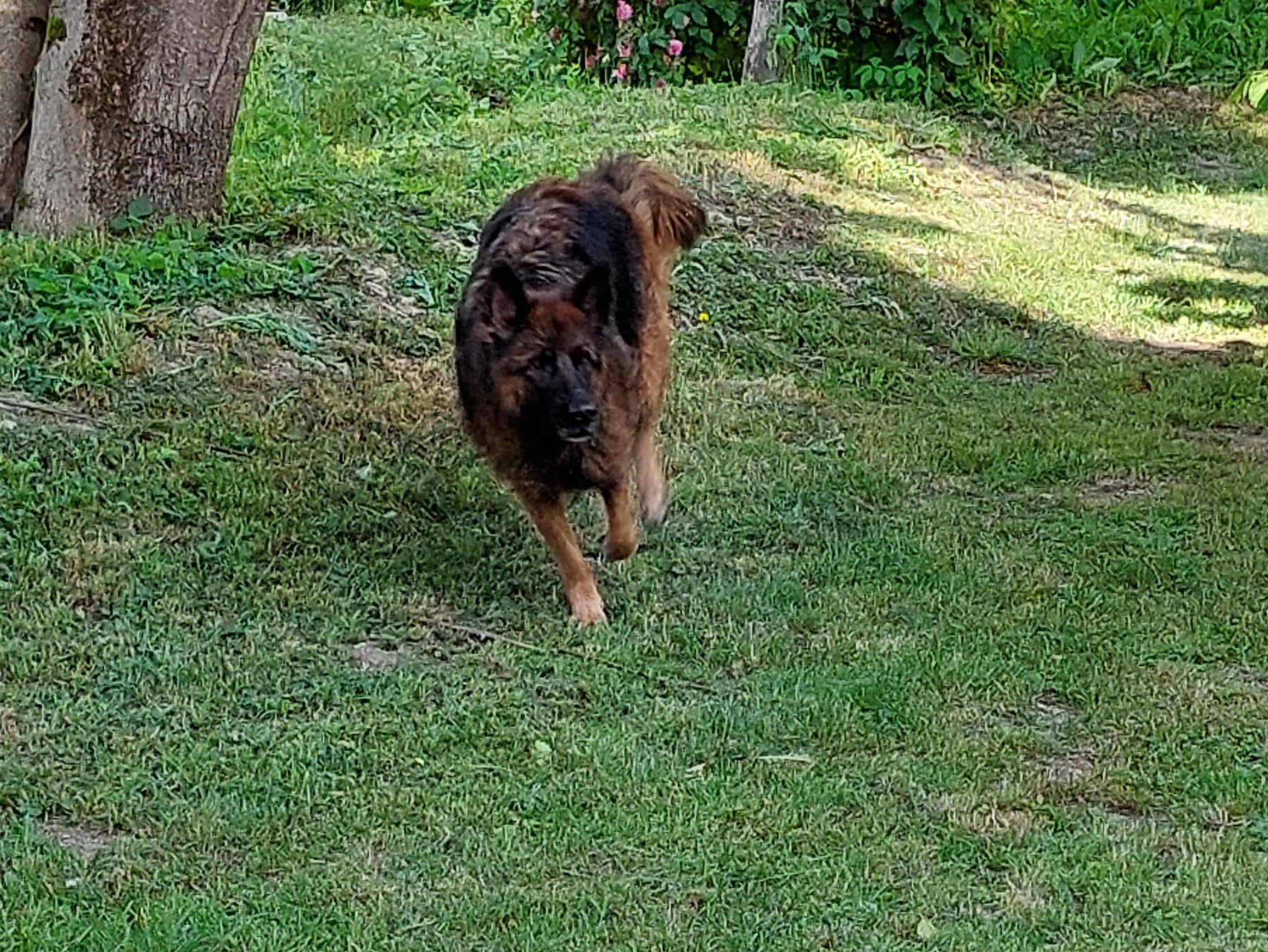 Für Hunde steht eine Hundehütte im Garten falls sich ein Hund ein schattiges oder warmes Plätzchen sucht.