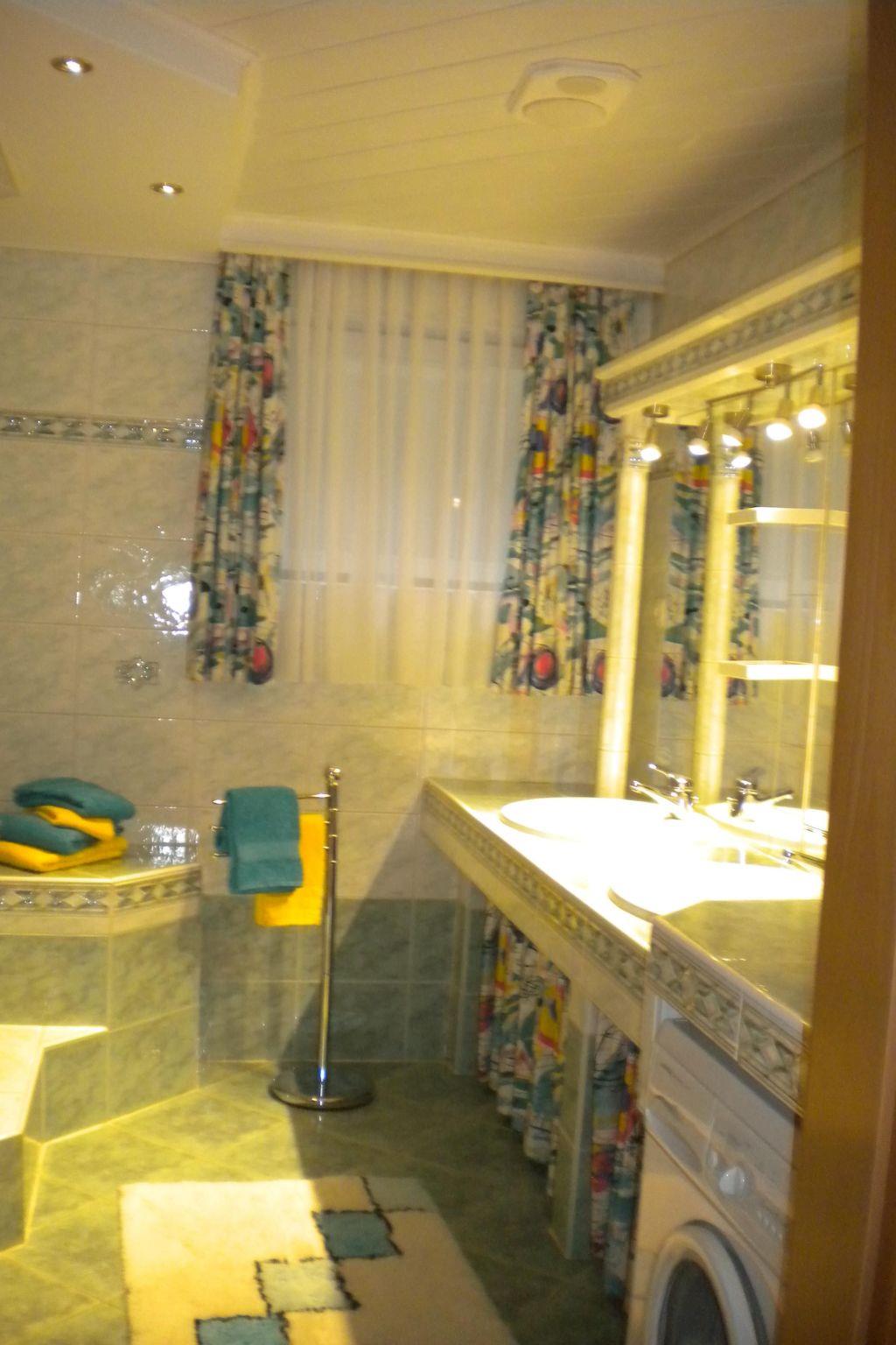 The ground-level exit takes you to the sun terrace and you can really enjoy the peace and quiet in the large garden. You will find plenty of garden furniture, deckchairs and a beautiful pergola to celebrate a nice summer party with your friends or family. The plot is approx. 1700 square metres in size and therefore offers enough space for your children to really let off steam. Of course, there is also a swing, a slide, a sandpit and a small tree house for our little guests.