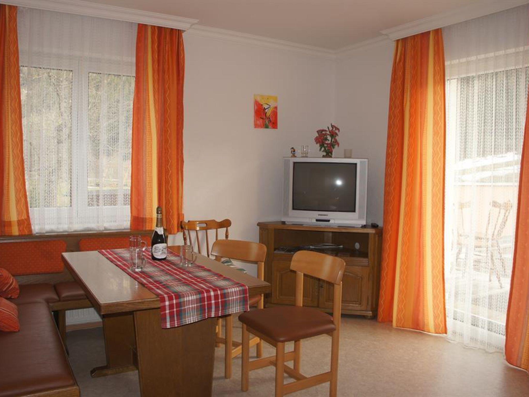 Ferienwohnung (83m²) mit 3 getrennten Schlafzimmern (je 2 Doppelbetten, 1 Einzelbett) sowie einem Badezimmer mit Dusche (Föhn vorhanden) und separatem WC. Erweiterung für 2 weitere Personen in einem der Schlafzimmer mit einer Schlafcouch möglich. Separate, voll ausgestattete Küche mit E-Herd mit Backofen, Geschirrspülmaschine, Mikrowelle, Kaffeemaschine, Wasserkocher, Toaster und Kühlschrank mit Gefrierfach. Anschließender Wohnbereich mit einer Sitzecke und Esstisch sowie einer Schlafcouch für 2 weitere Personen. Große, möblierte Terrasse mit Blick auf die umliegenden Berge. Handtücher und Bettwäsche werden kostenlos zur Verfügung gestellt. WLAN frei verfügbar. Die Ferienwohnung liegt im Parterre des Ferienhauses.