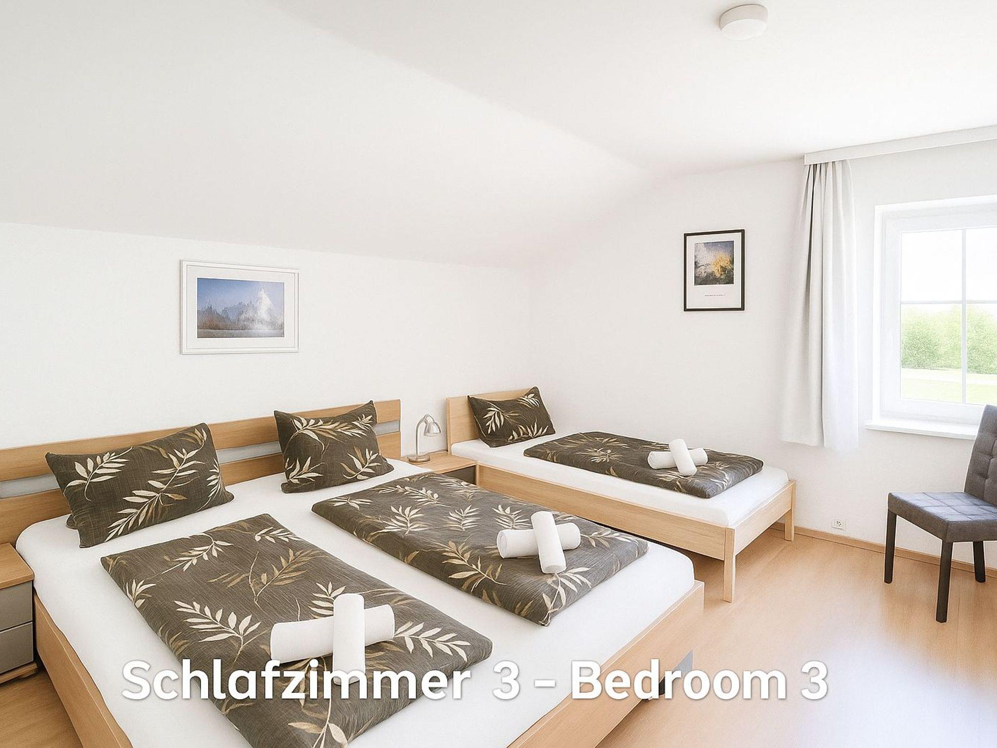Drei Schlafzimmer mit je einem Doppelbett 180 x 200 cm