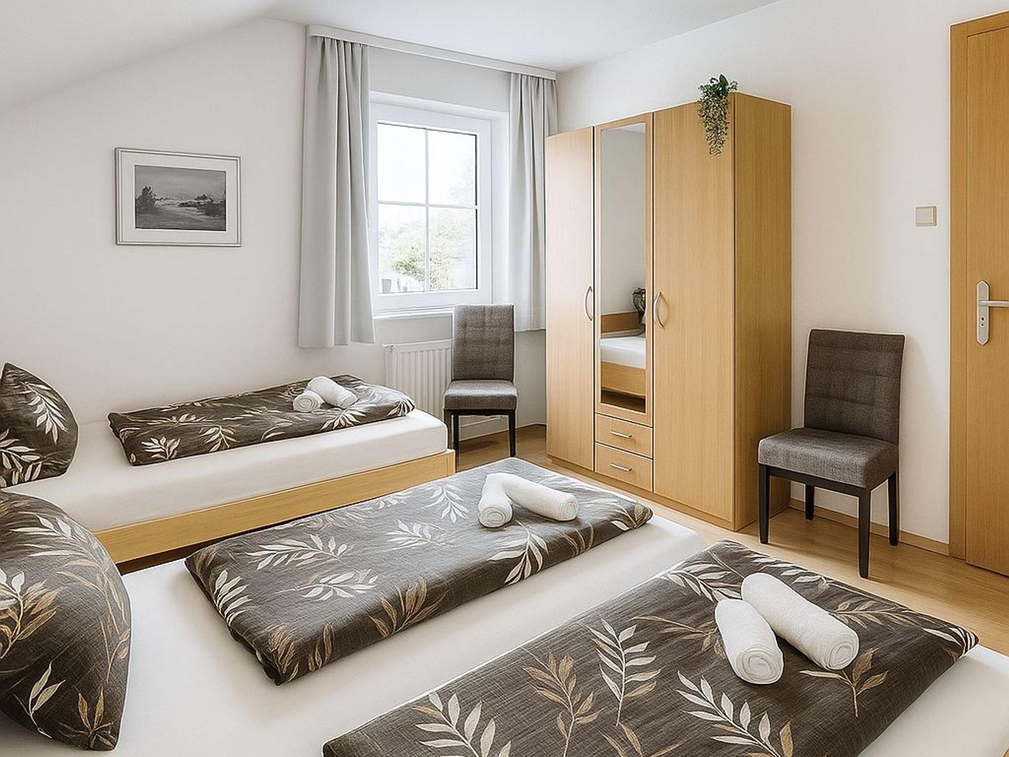 Unser Appartement 7 erstreckt sich über zwei Stockwerke und hat 80 m². Es besteht aus einer Küche, Badezimmer, separate toilet, zwei Vorräumen, einem Stiegenhaus und drie Doppelbett Schlafzimmer.