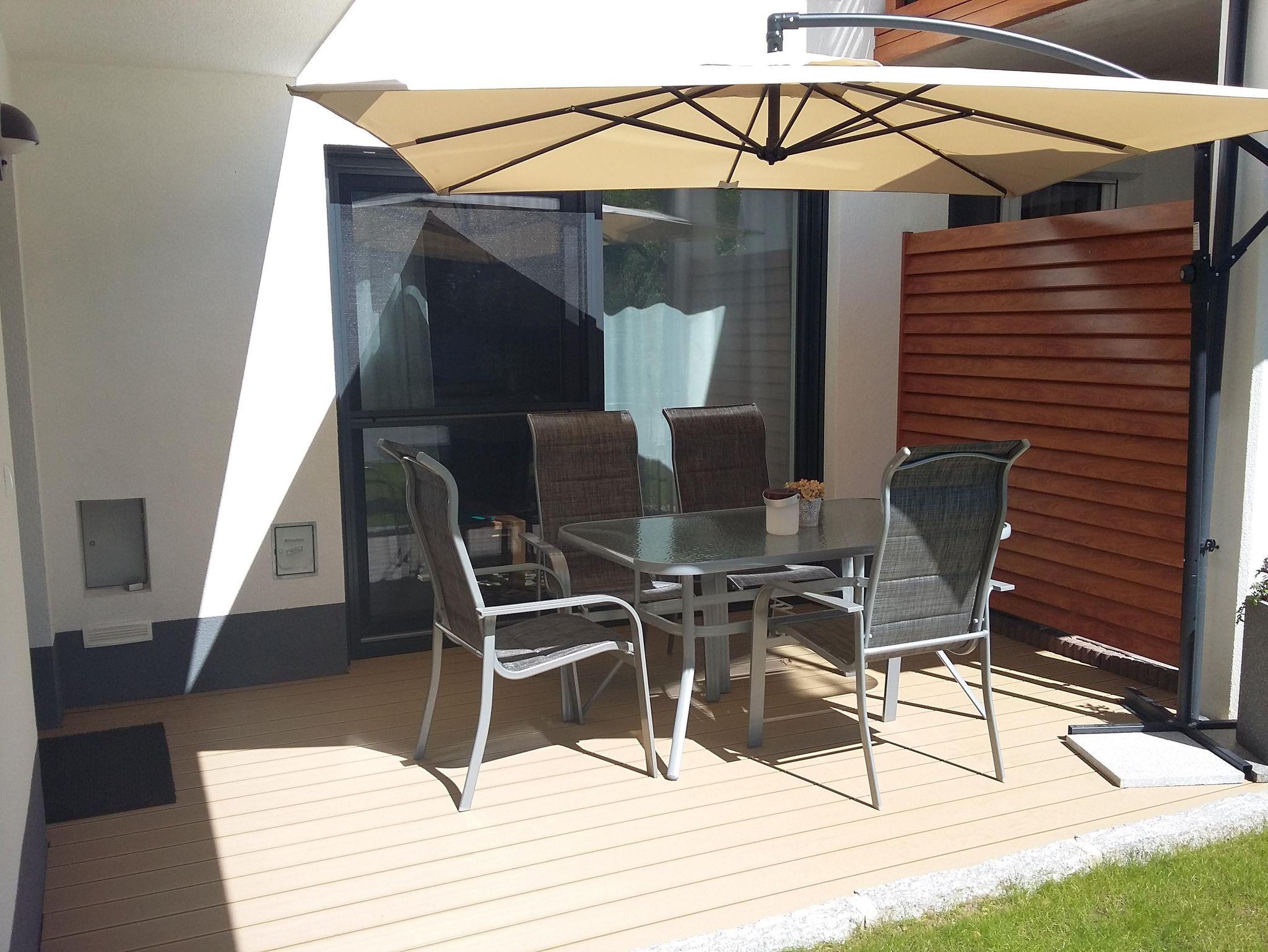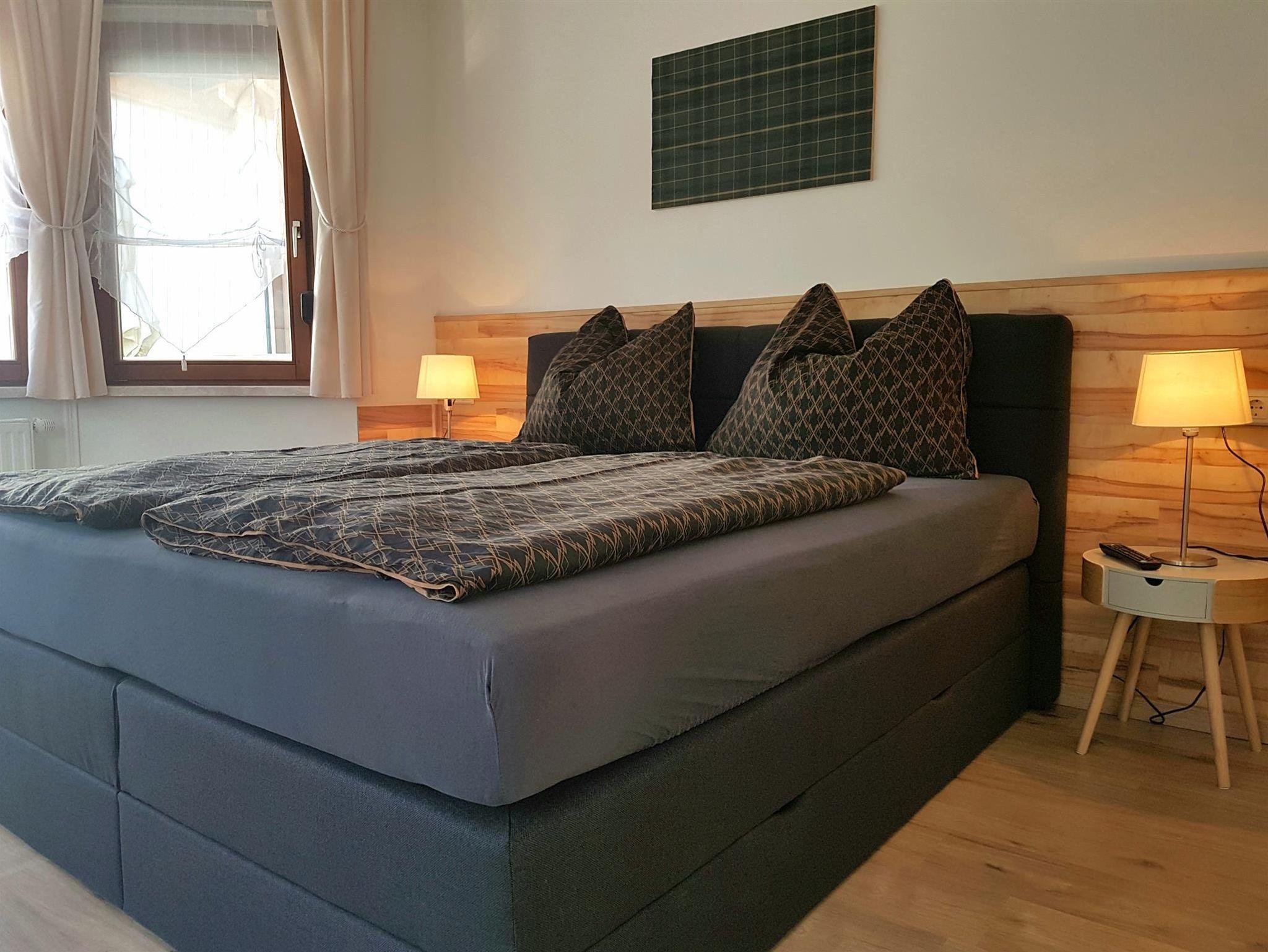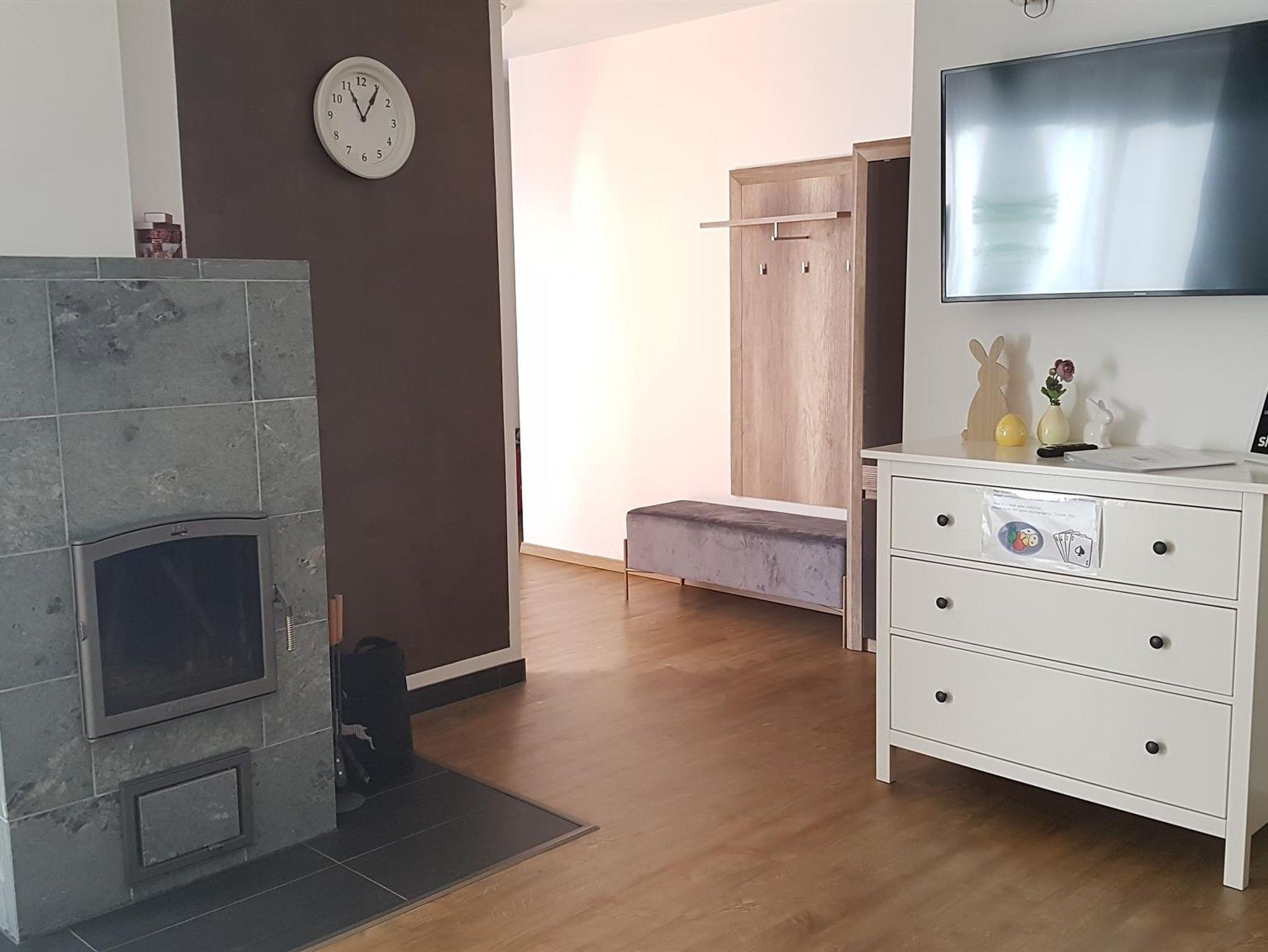 Im neu gebautem Haus befindet sich die ca 75qm² große Wohnung im Erdgeschoss. Sie verfügt über 2 Schlafzimmer, einem modernem Wohn- und Essbereich mit gemütlicher Essecke und einer Terrasse mit Südblick. Das Bad ist mit einer bodengleichen Dusche, Waschplatz, Seife und Shampoo, Fön und WC ausgestattet. Beide Schlafzimmer sind modern und bieten Boxspringbetten, Kleiderschrank und TV. Im Wohnbereich erwartet Sie eine gemütliche Couch - die als Schlafplatz genutzt werden kann, großer Smart TV mit Sky TV Zugang und einem Specksteinofen. Die offene Küche ist im modernen Landhausstil und bietet viele Untensilien zum kochen. Die Wohnung wurde mit viel Liebe eingerichtet und ist unser kleines Chalet.
