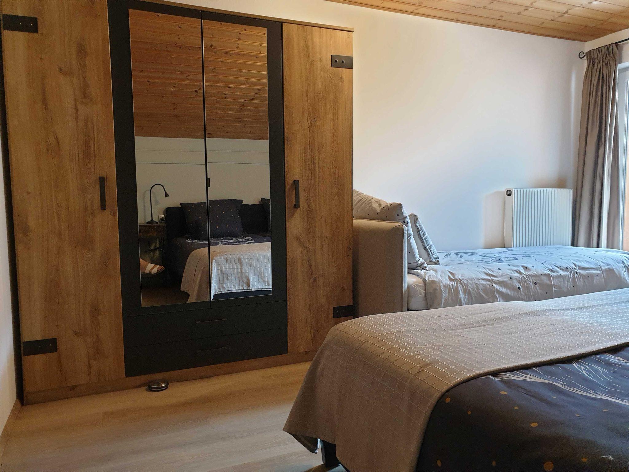 Doppelzimmer-# 2 : Doppelbett ( 180 x 200 ), Kleiderschrank und Sessel. Steckdose in Bettnähe.