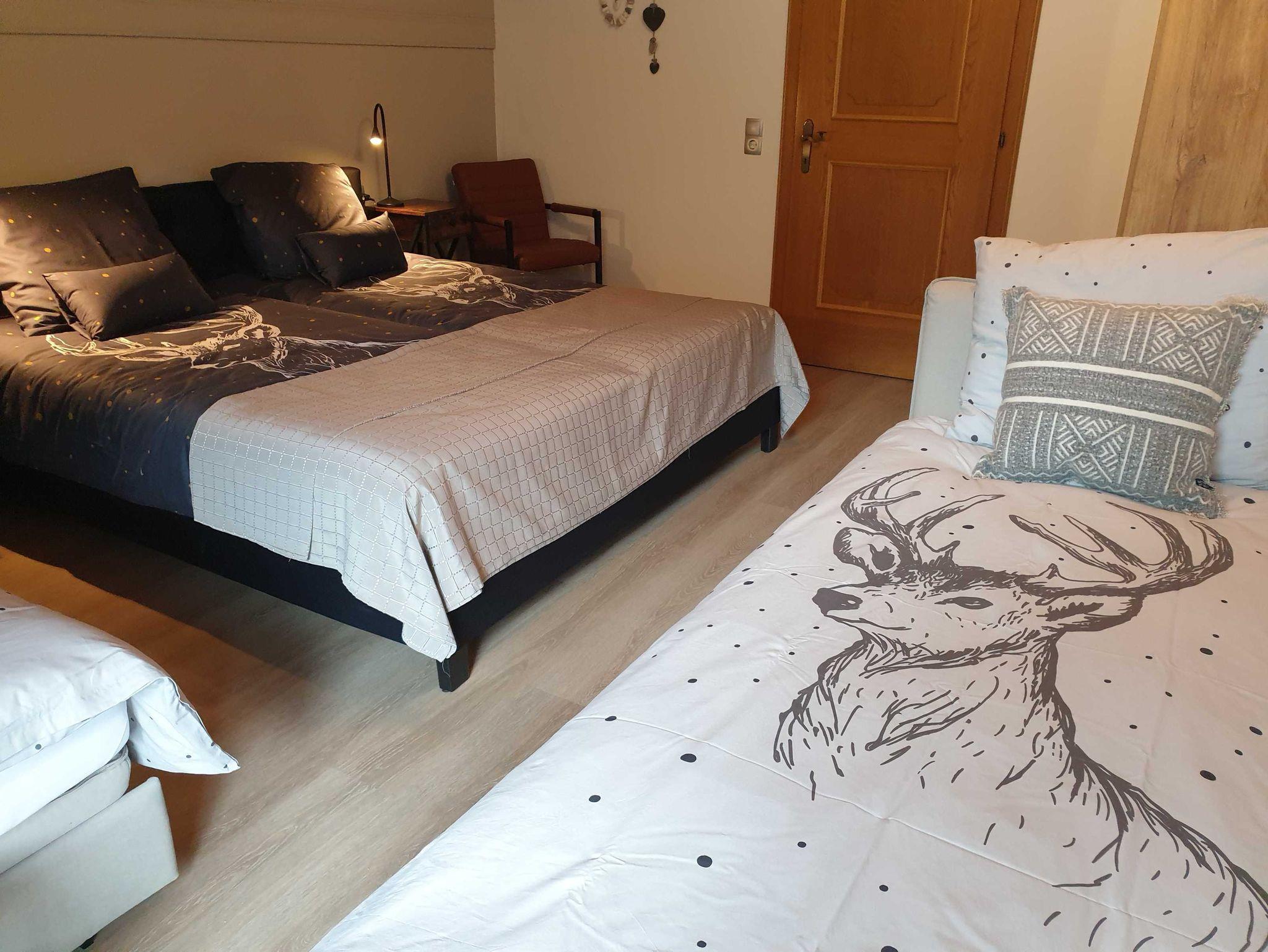 Ferienwohnung EDELWEISS, im Erdgeschoss verfügt über ein geräumige persönlich eingerichtete Wohnküche, mit gemütlichen Eckgruppe und Smart TV, ein grosses Schlafzimmer mit einer schöner Sitzecke und einem kleinen Badezimmer. Im hinteren Teil des grossen, breiten Flurs eine separate Ecke mit Etagenbett. Auch hier eine grosse private Terrasse mit Gasgrill im Garten. Dieser Ferienwohnng ist besonders geeignet für zwei Erwachsene oder eine Familie mit jüngeren Kinder.