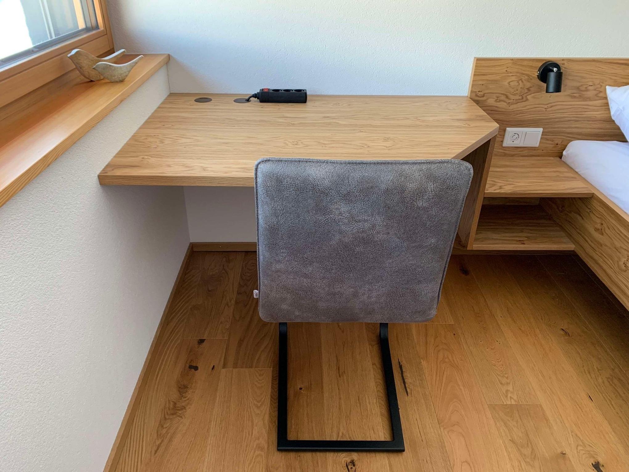 Die 75 Quadratmeter große Wohnung befindet sich im Obergeschoss auf der Panoramaseite und ermöglicht aus allen Schlaf- und Wohnzimmer einen gigantischen Blick auf die beeindruckende Bergwelt.