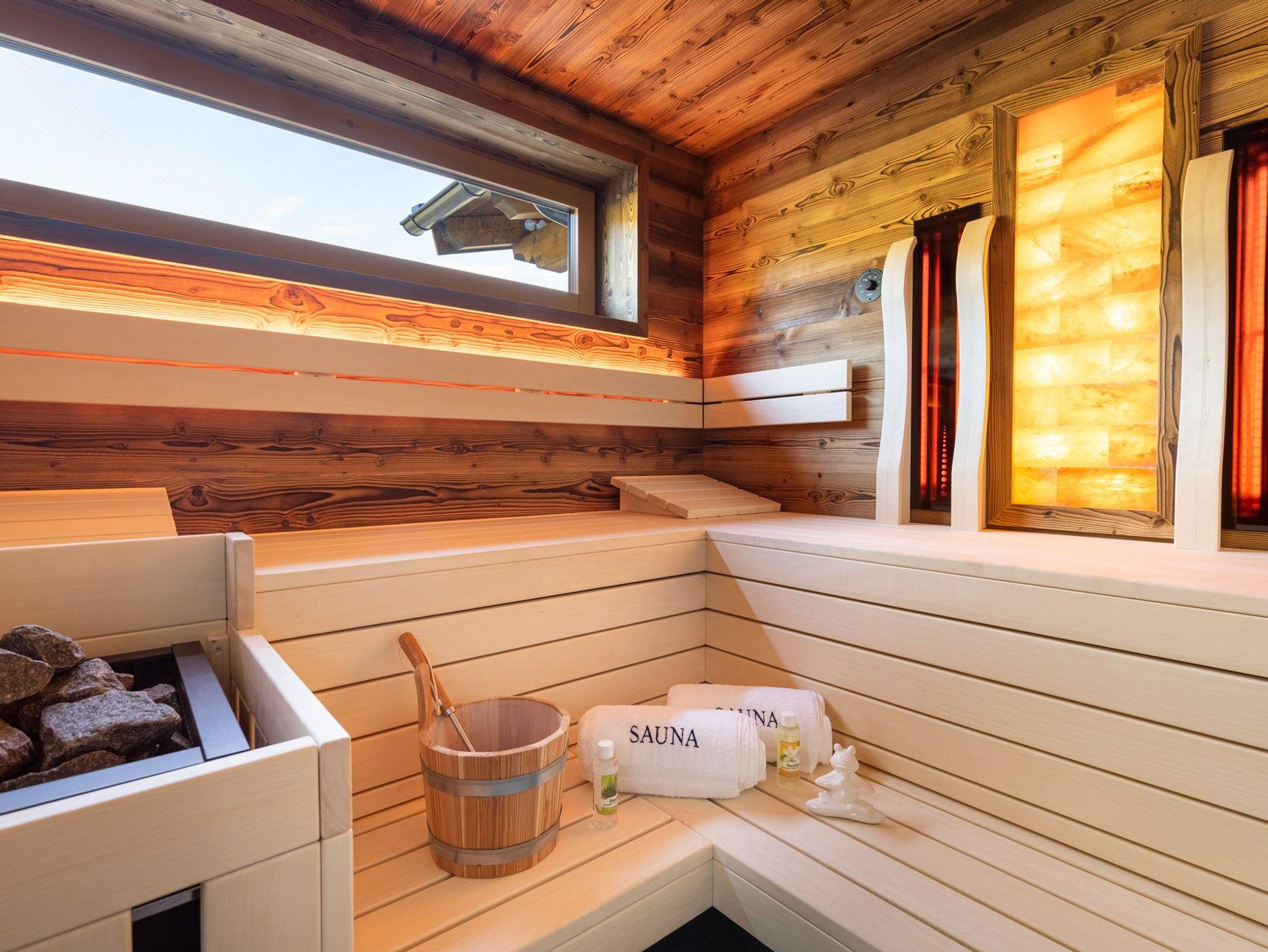 Der private Wellnessbereich mit Sauna und Panoramablick auf den Dachstein lädt nach einem aktiven Tag zum Entspannen ein.