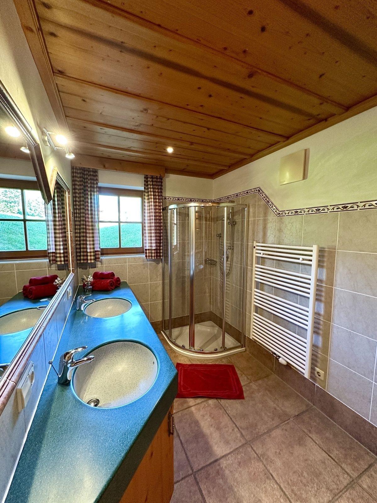 1 Badezimmer mit Dusche & 2 Waschbecken