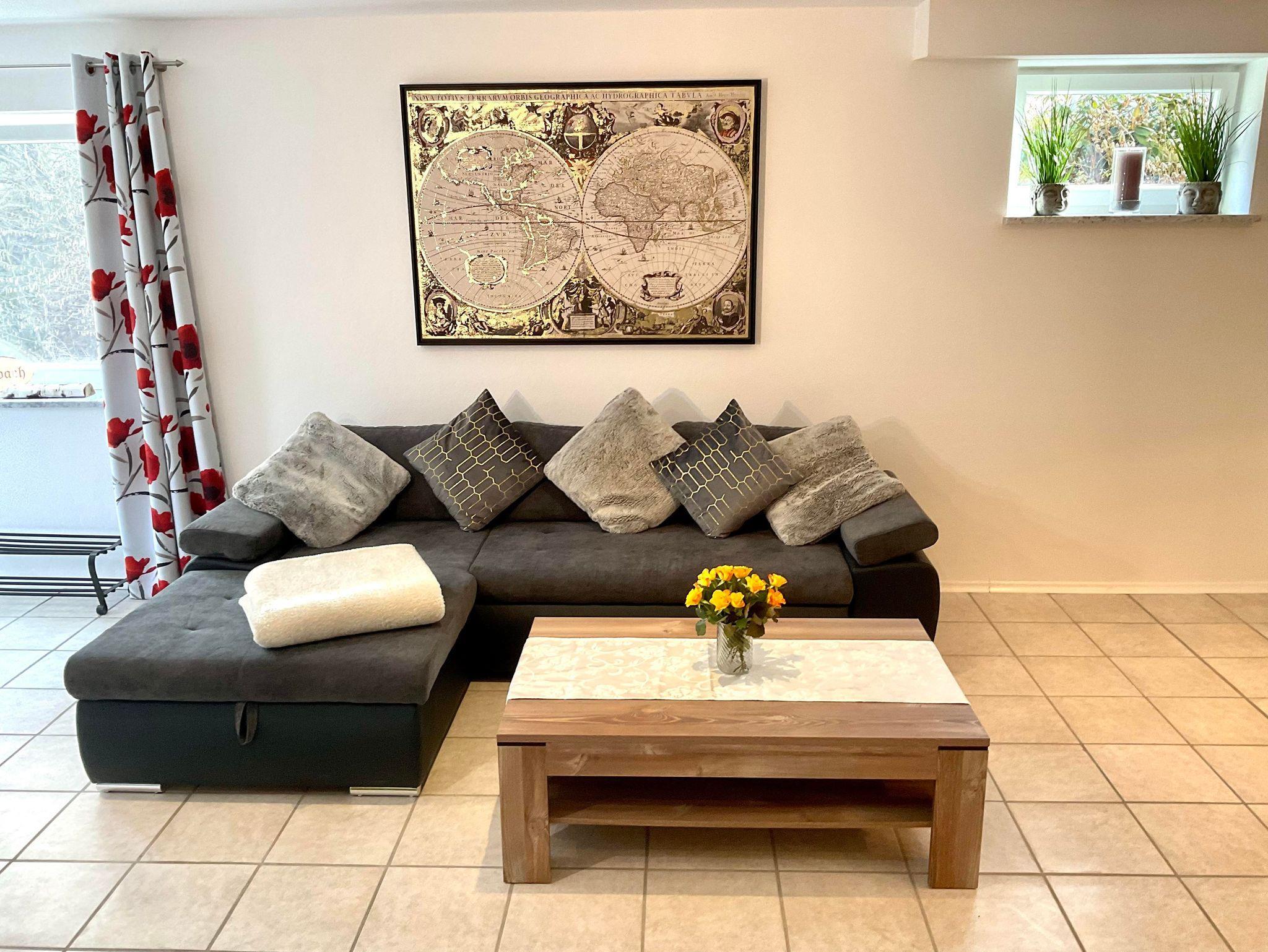 Die Wohnung ist ausgestattet mit 180cm Doppelbett (plus Schlafcouch), einem Bad mit Regenwald- und Massagedusche, einem schnellen, kostenlosen und stabilen Internetanschluss (300 MB), einem Online Arbeitsplatz, smartem HDTV mit Prime Video, einer vollausgestatteten Küchenzeile zum Kochen, Espresso- und Senseo Kaffeemaschine für den Kaffeegenuss am Morgen und zwischendurch.