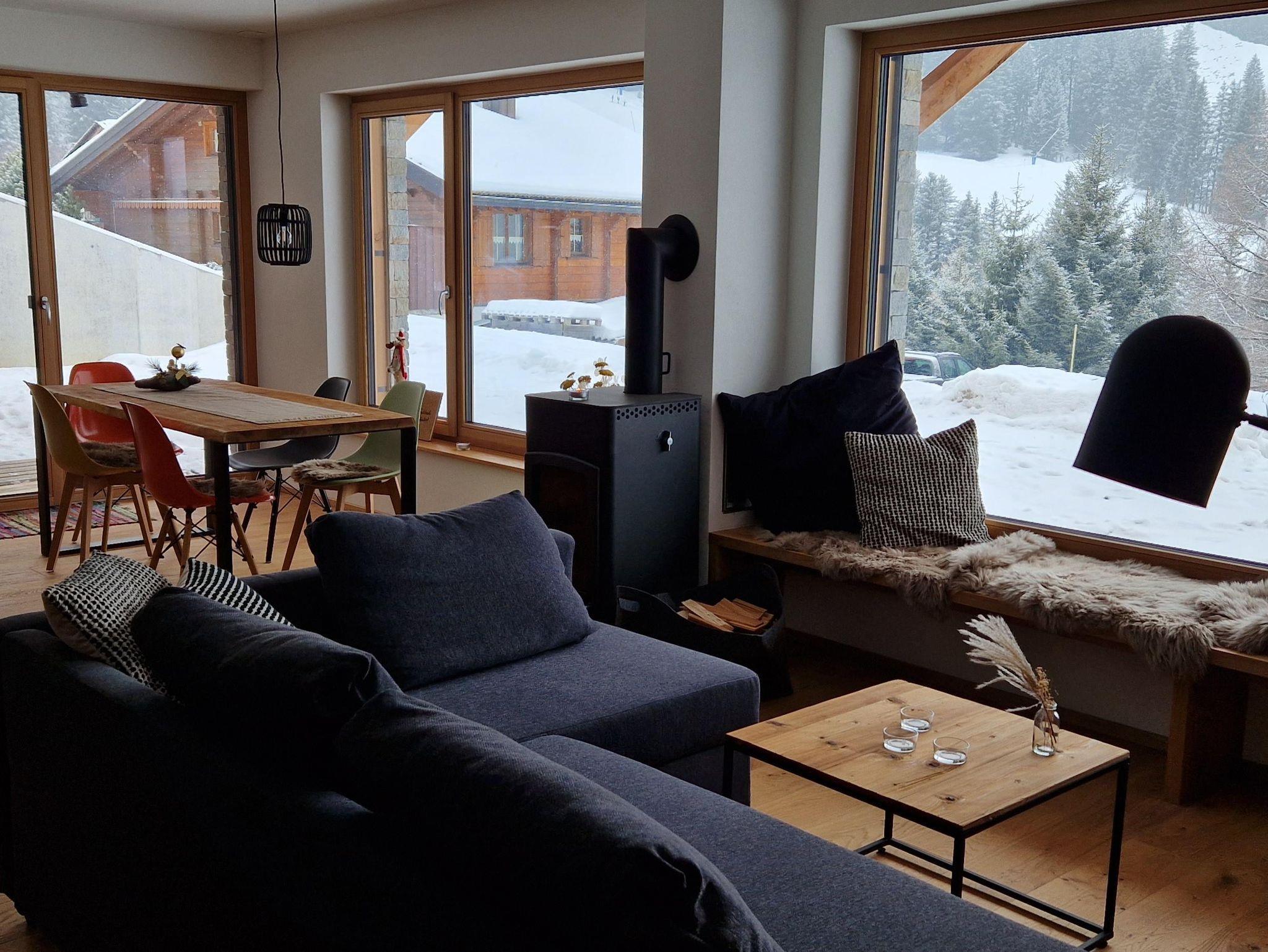 Anspruchsvoller Wohnkomfort, moderner alpenländischer Charme und eine aussergewöhnliche Behaglichkeit – nicht zuletzt durch die Kaminöfen und die allgemeine Sauna.